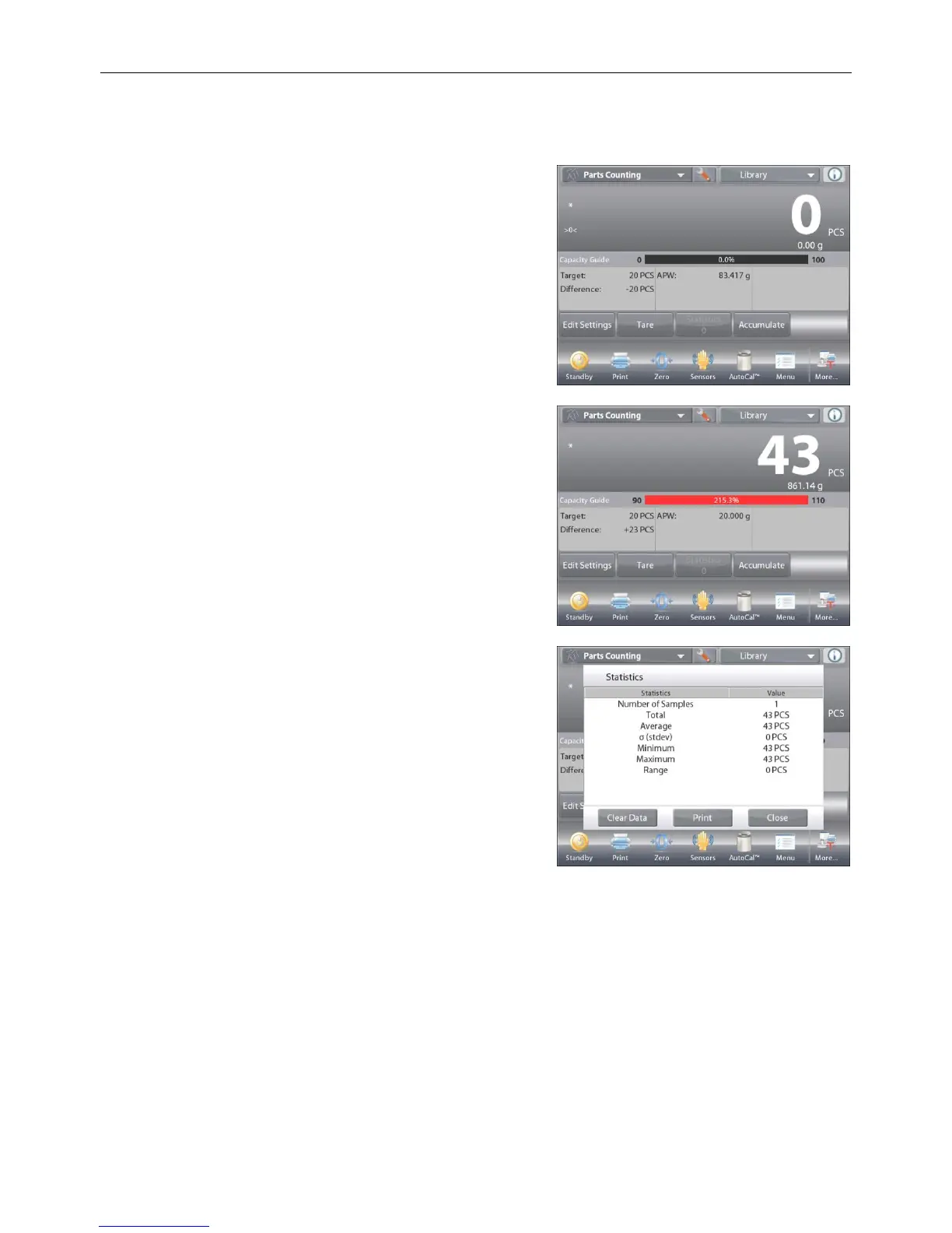 Statistics Automatic mode is similar to manual mode (above) except the first stable weight is automatically