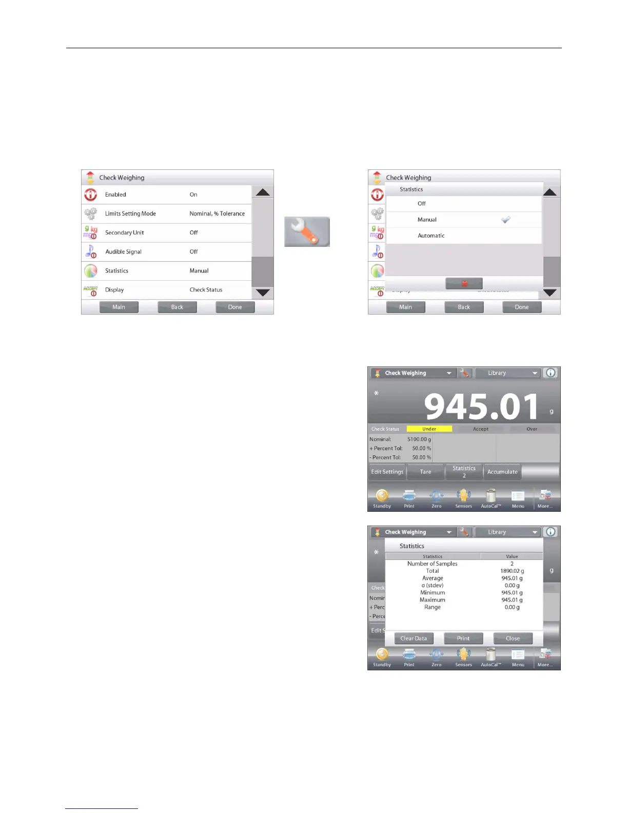 Statistics Automatic mode is similar to manual mode (above) except the first stable weight is automatically