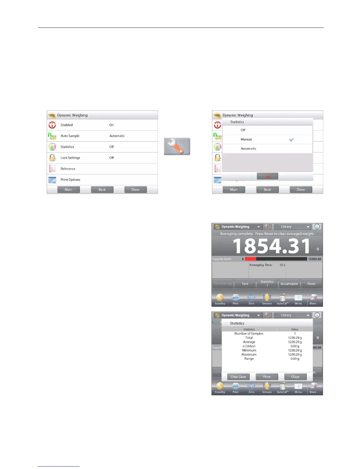 Statistics Automatic mode is similar to manual mode (above) except the first stable weight is automatically