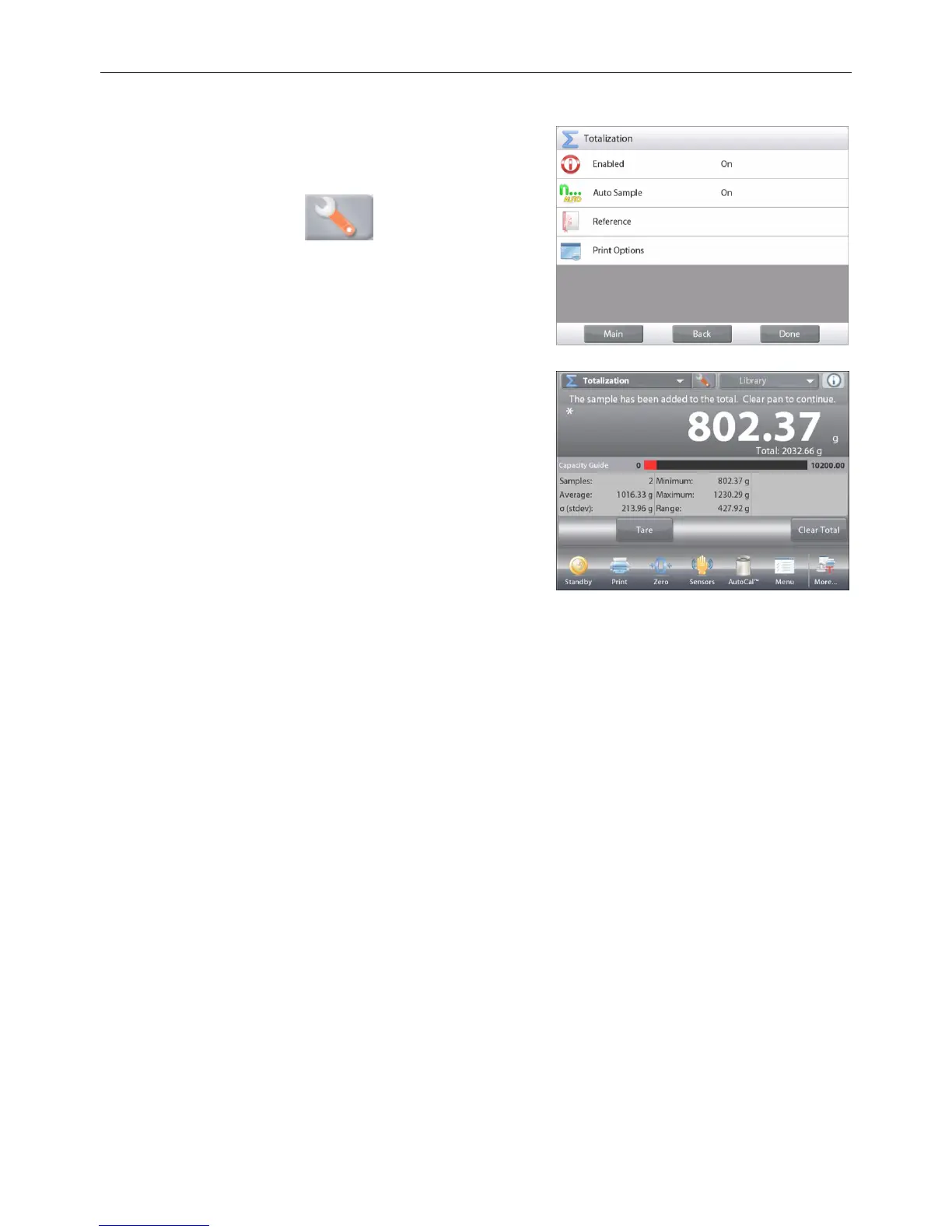 The weight of the item is automatically added (when stable) to the