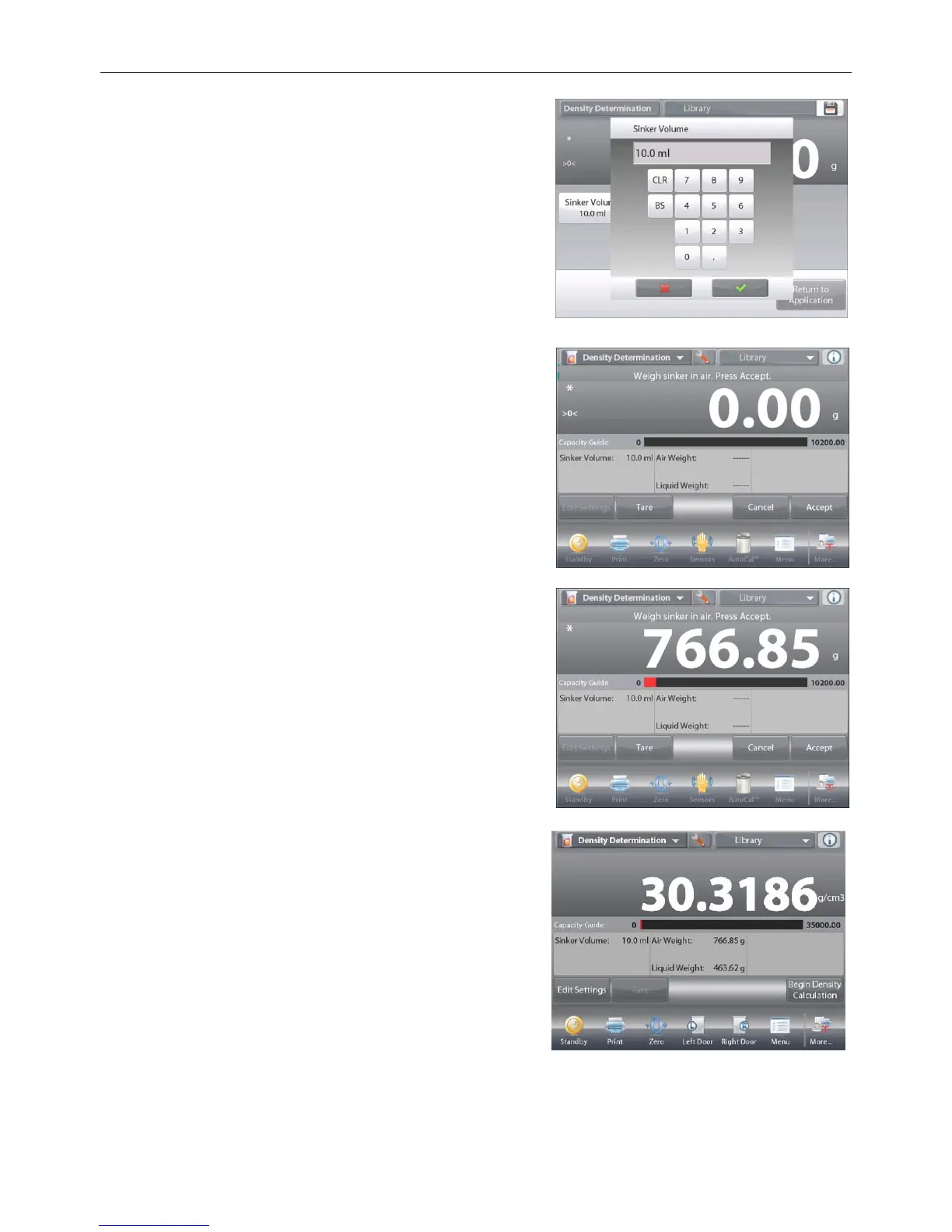 To return to the Density Determination home screen,