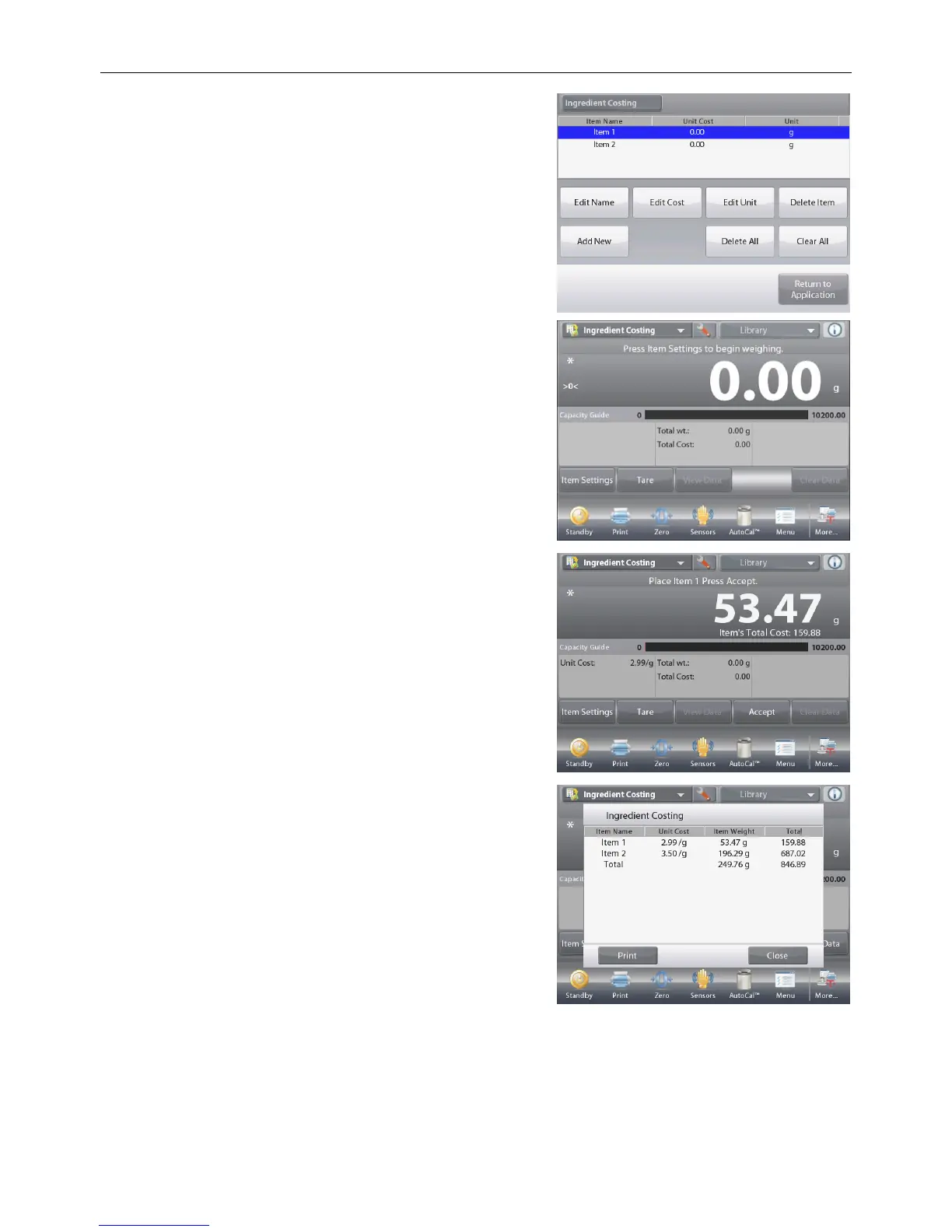 Ingredient Costing Results.