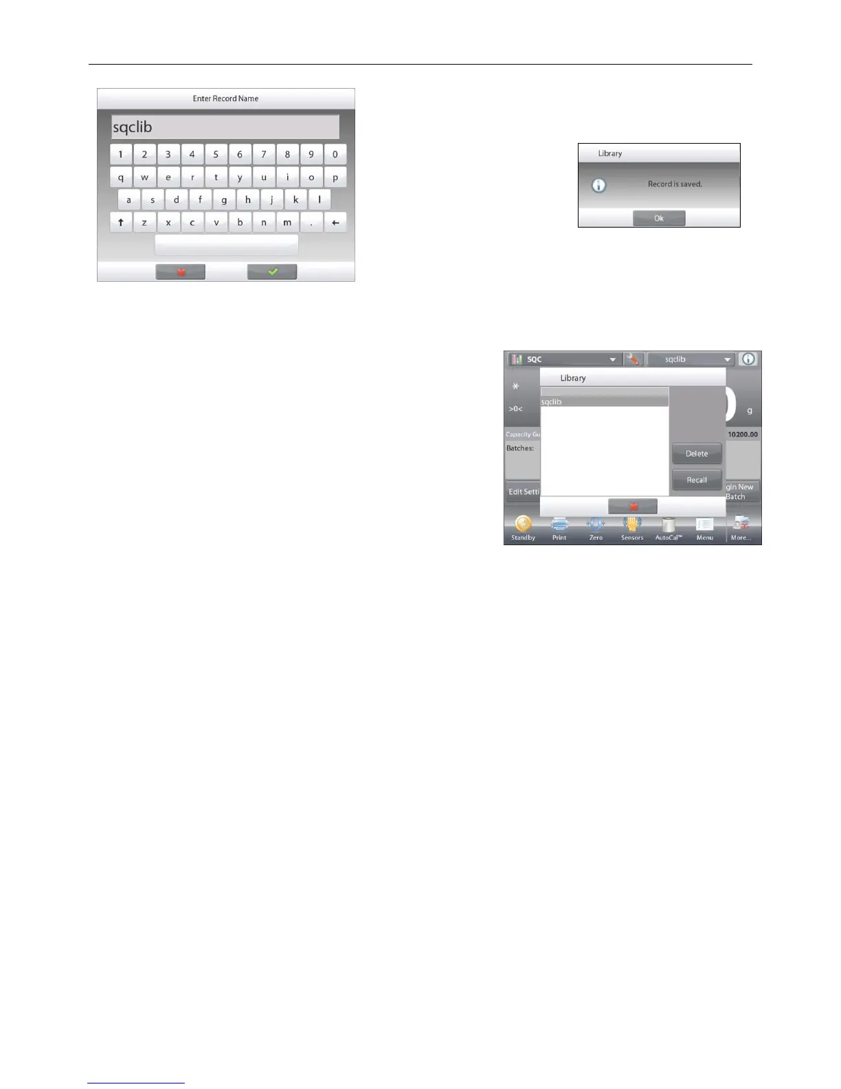 To delete a stored record, follow “Retrieving a Library Record” above, but press Delete instead of Recall.