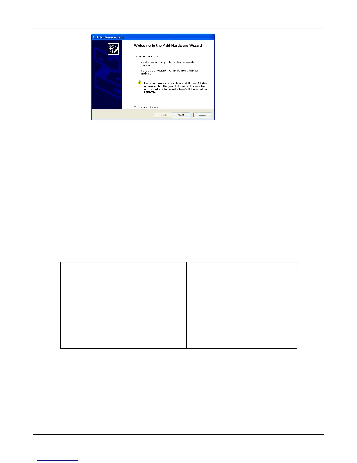Example of Windows XP Hardware Wizard