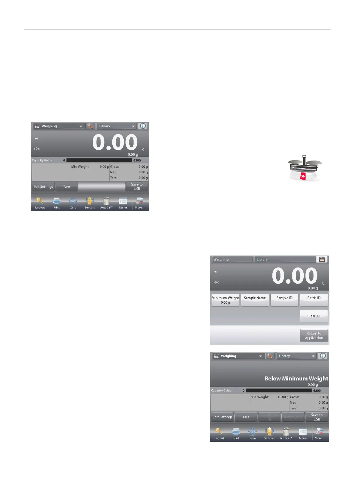 1. In the upper left portion of the home screen, select Weighing (this application is the default).