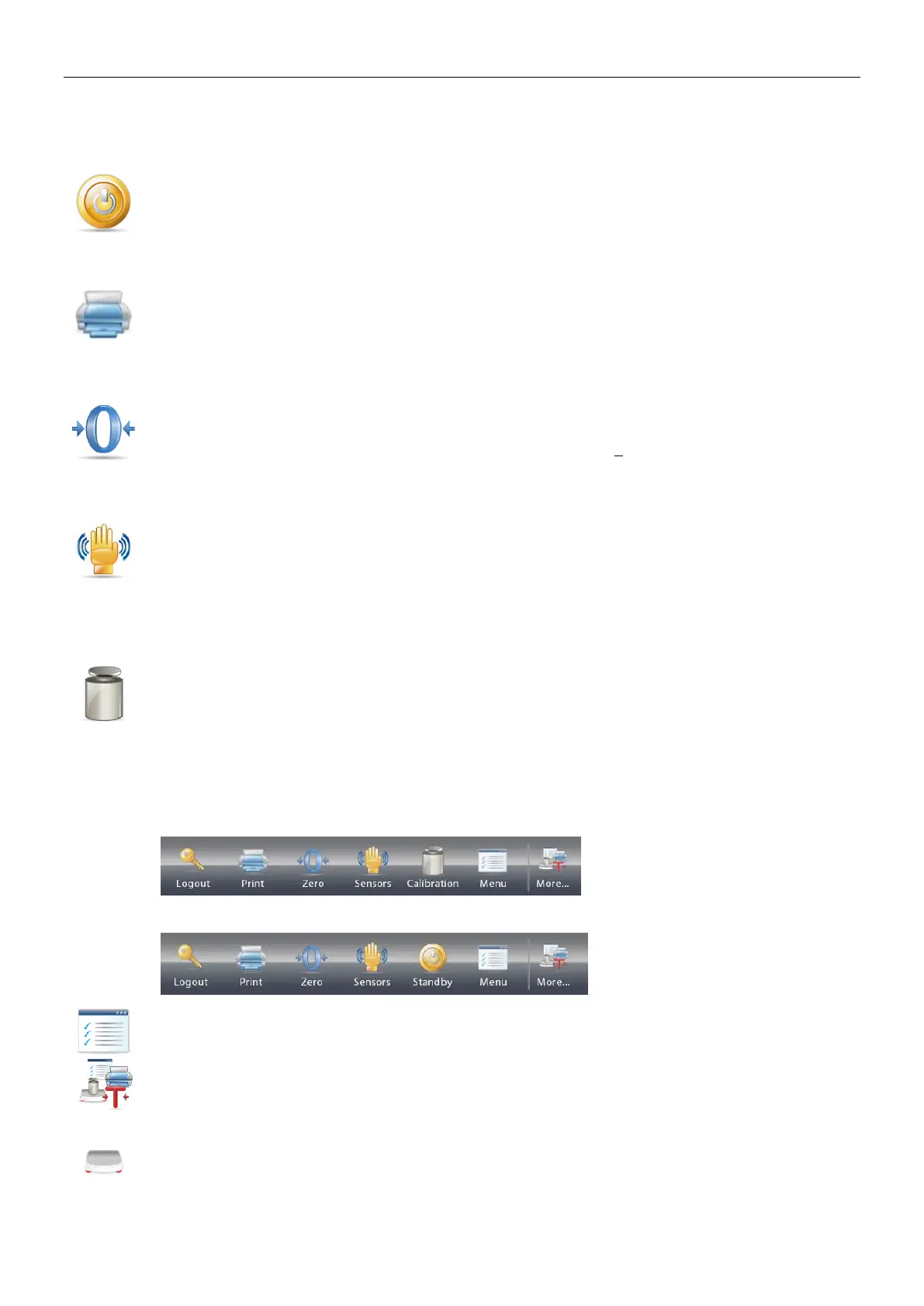 Seven Icons are initially available to operate the Balance and access the Menu. These Icons can be customized