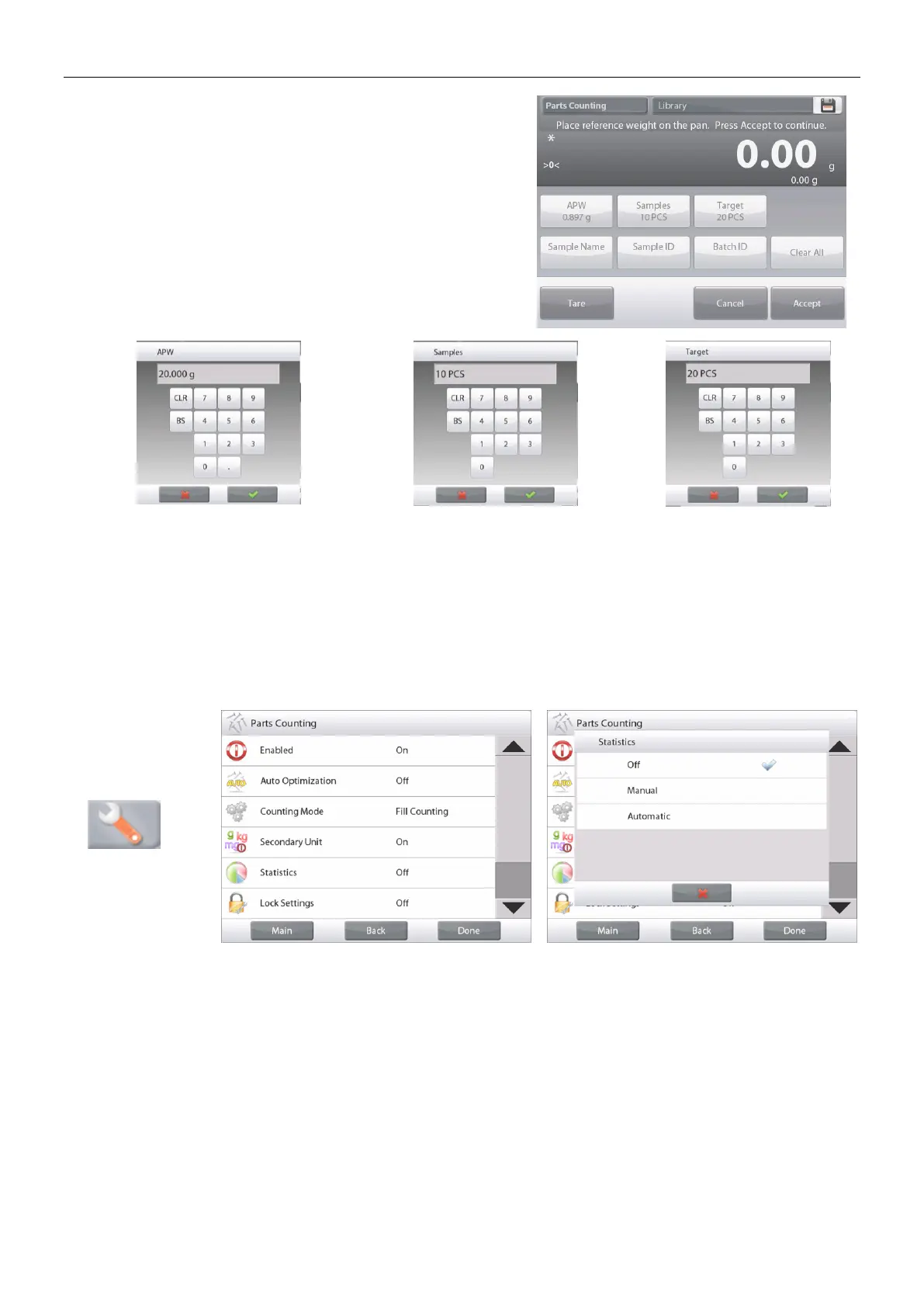 Statistics can be determined manually (Manual mode, with key press after each step) or automatically
