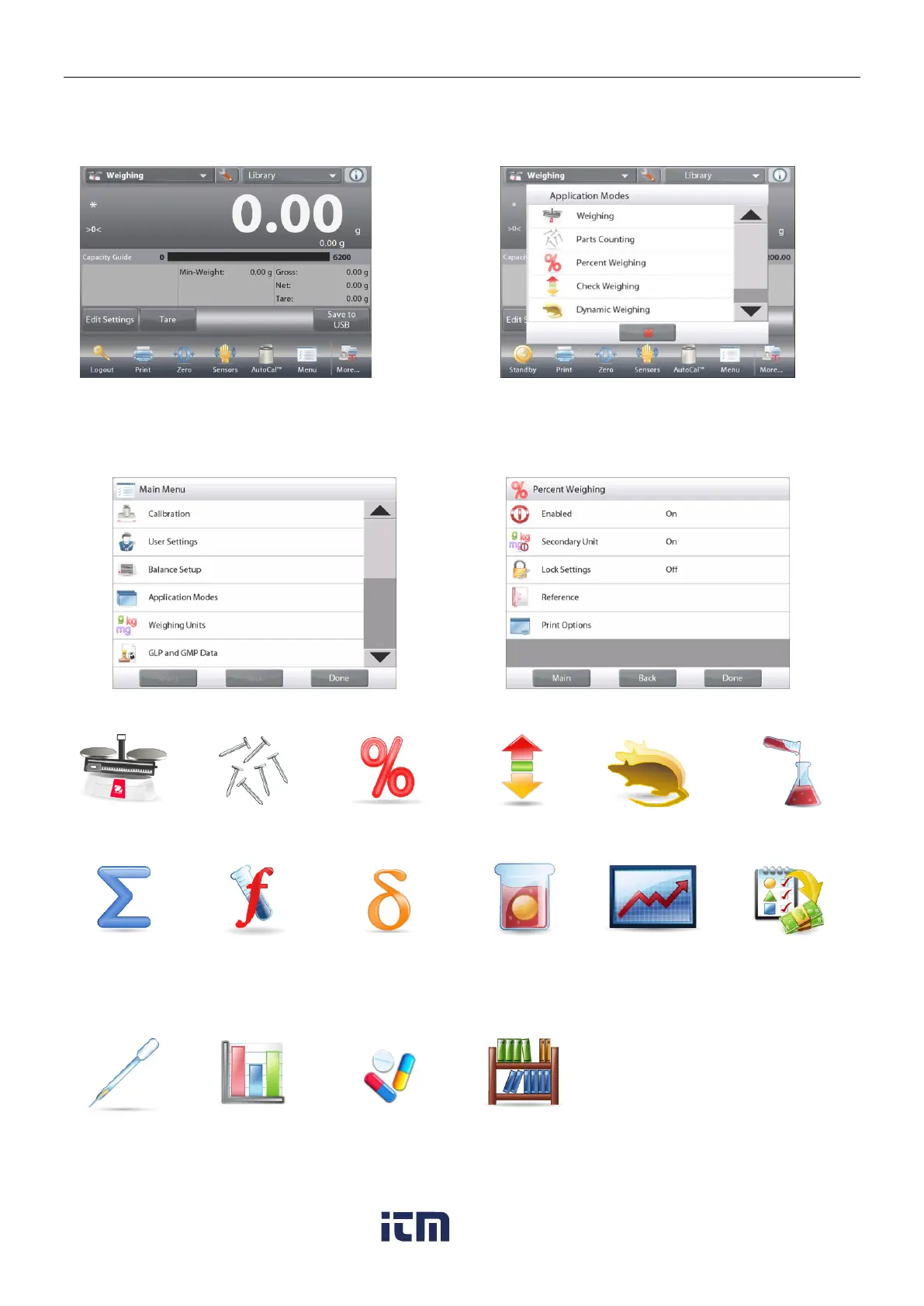enable. Then touch Enabled in the setup menu for that application mode Percent Weighing in the example