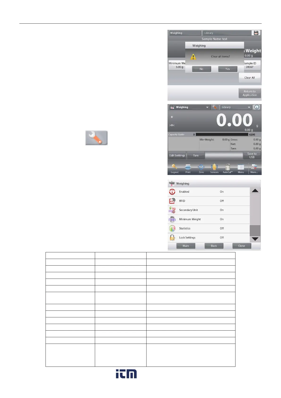 The Weighing Application Setups are below (defaults in Bold)