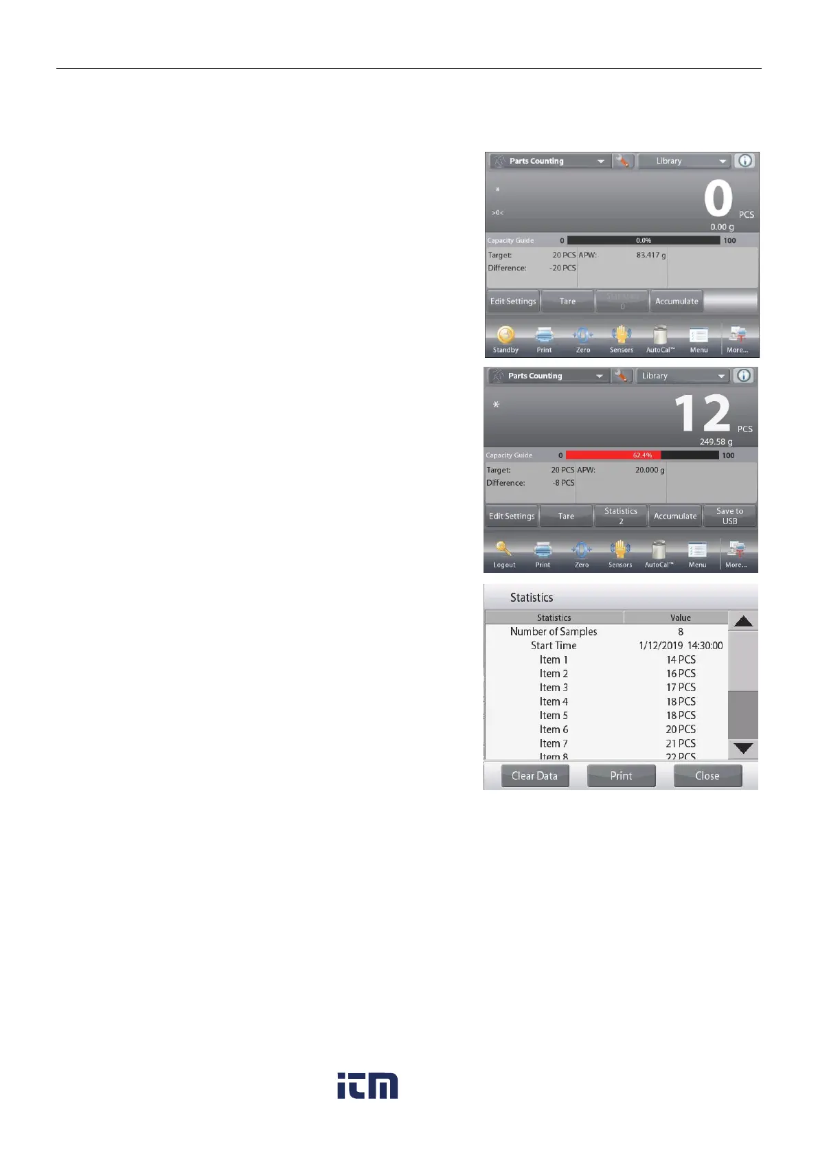 Statistics Automatic mode is similar to manual mode (above) except the first stable weight is automatically
