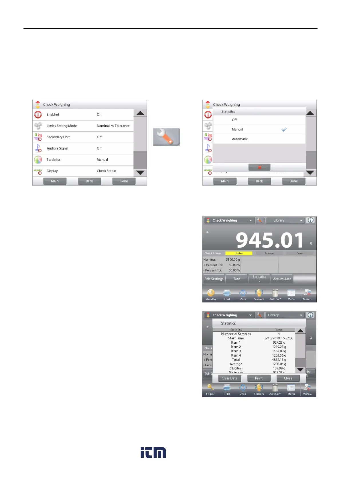Statistics Automatic mode is similar to manual mode (above) except the first stable weight is automatically
