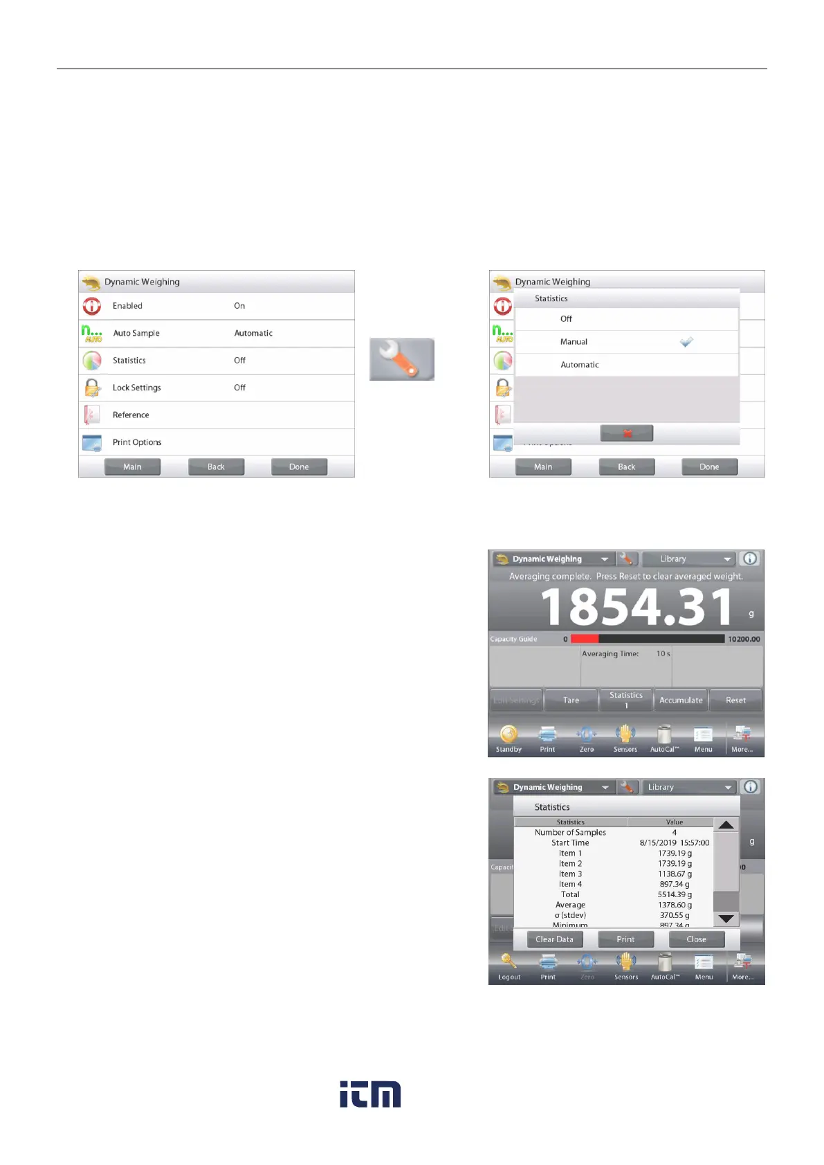 Statistics Automatic mode is similar to manual mode (above) except the first stable weight is automatically