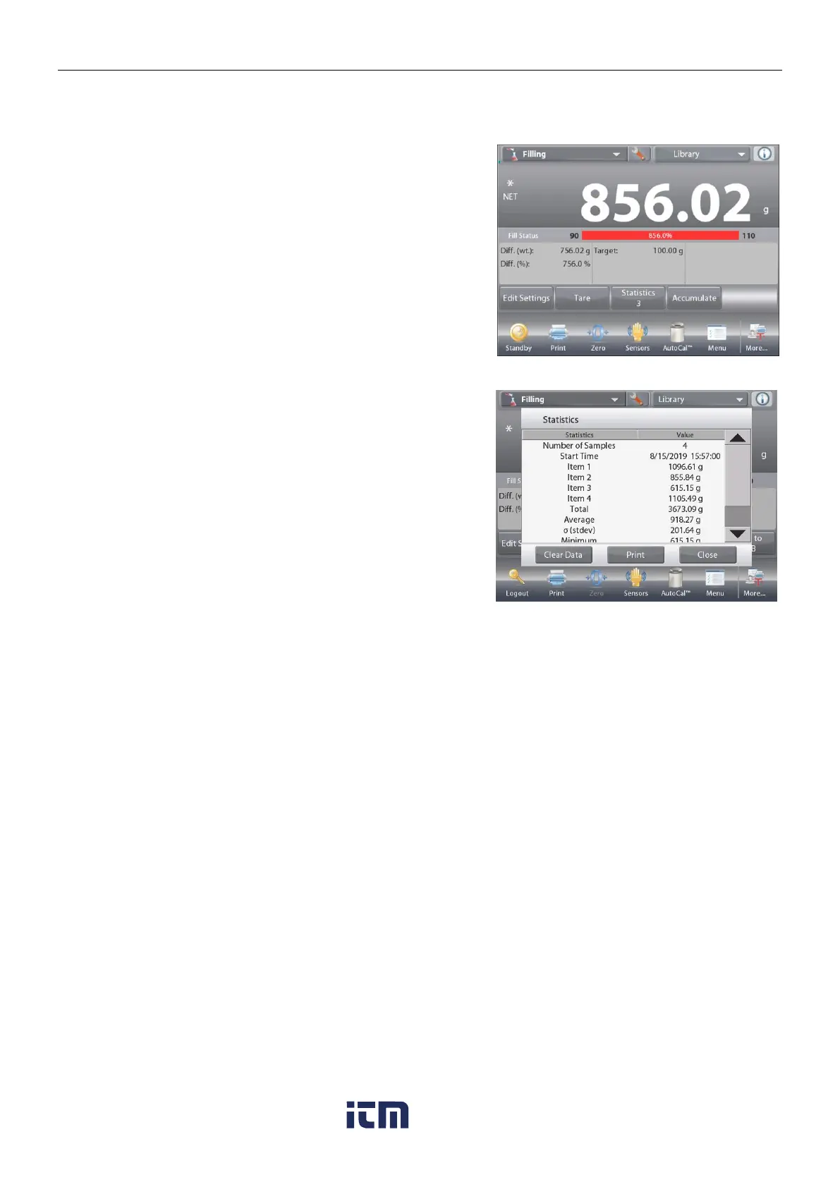 Statistics Automatic mode is similar to manual mode (above) except the first stable weight is automatically