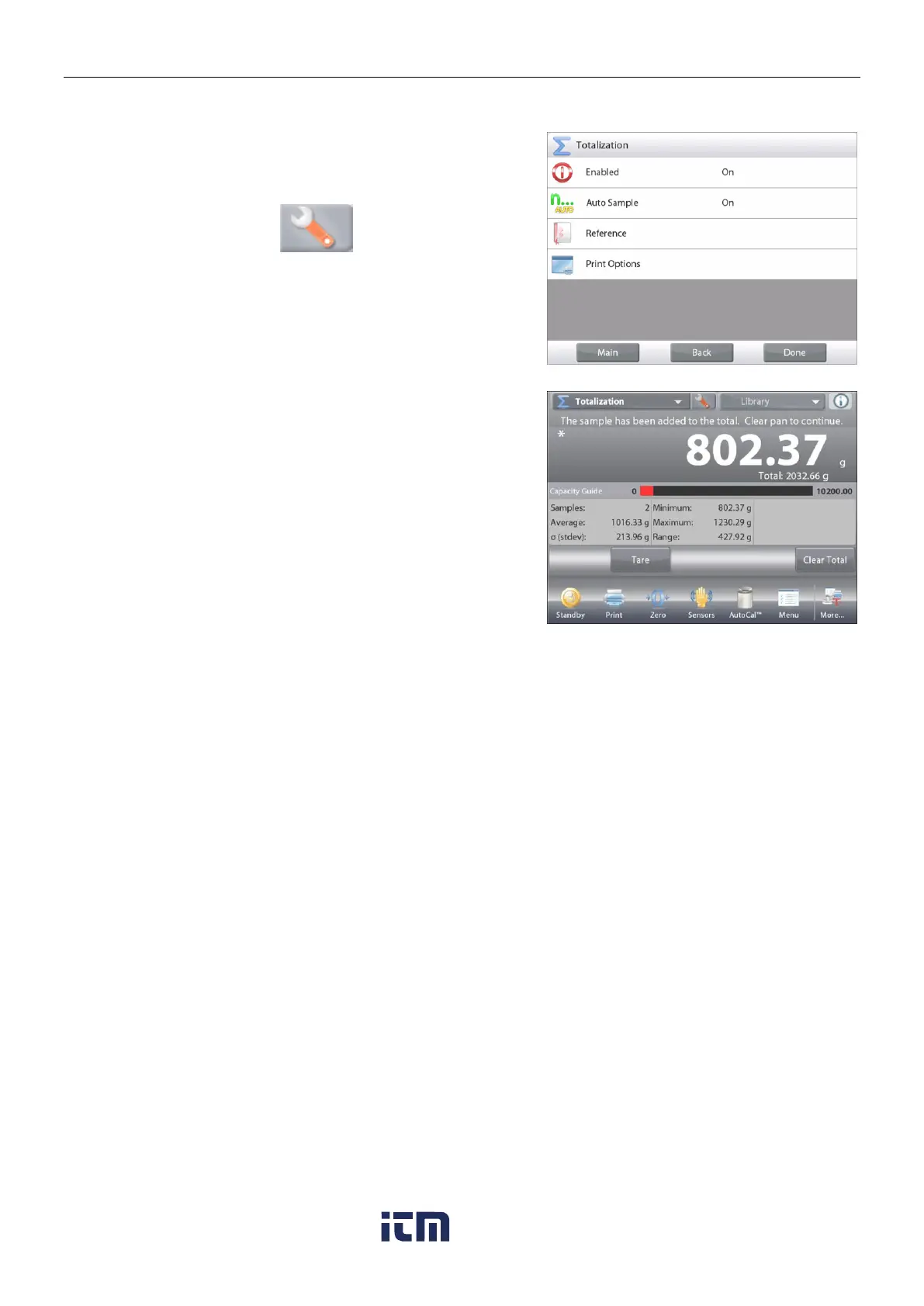 The weight of the item is automatically added (when stable) to the