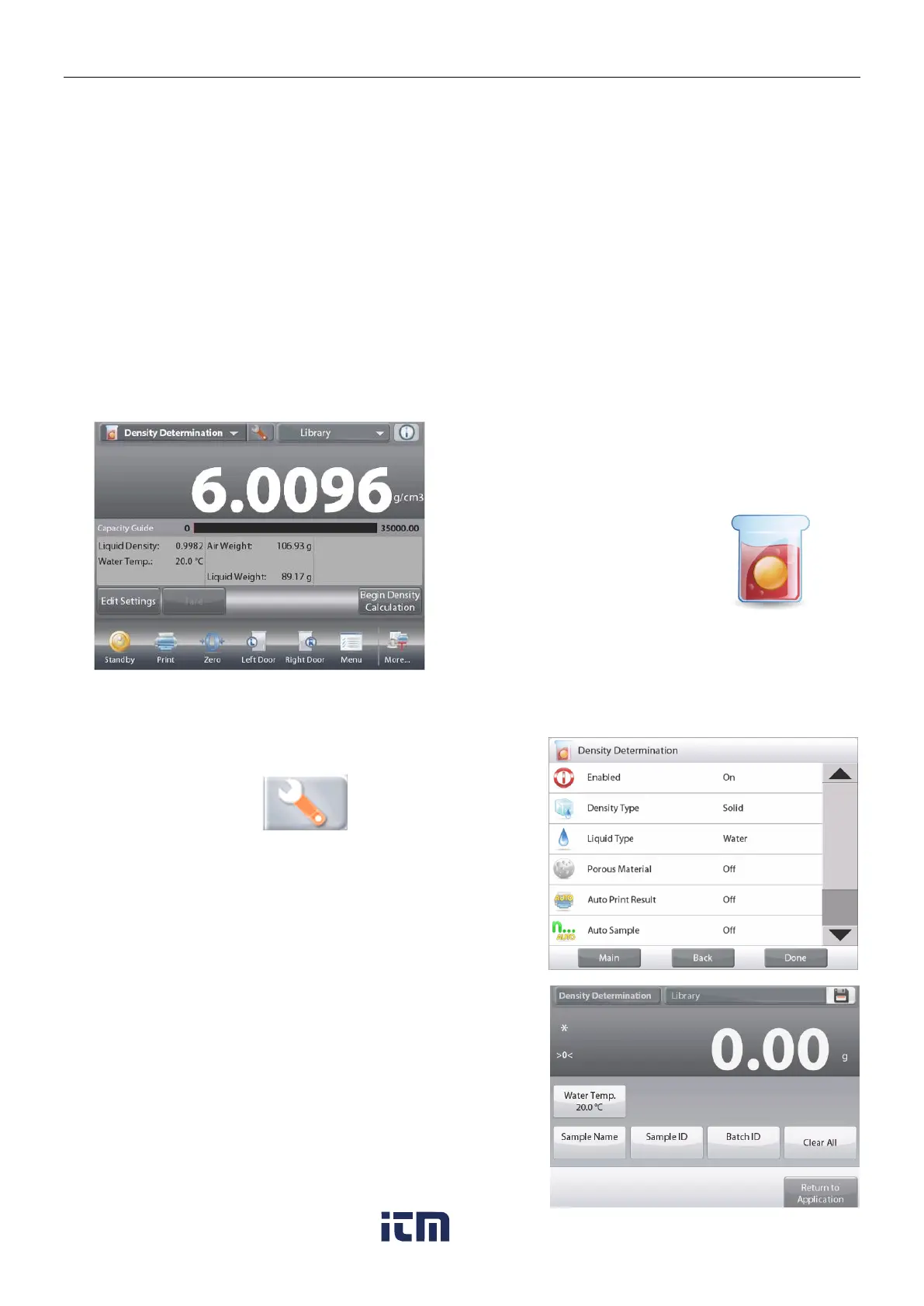 measurements. The balance software includes a built-in reference density table for water at temperatures