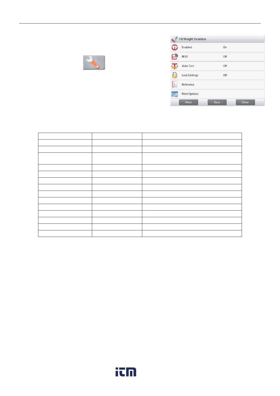 The Fill Weight Variation Application Setups (defaults in Bold)