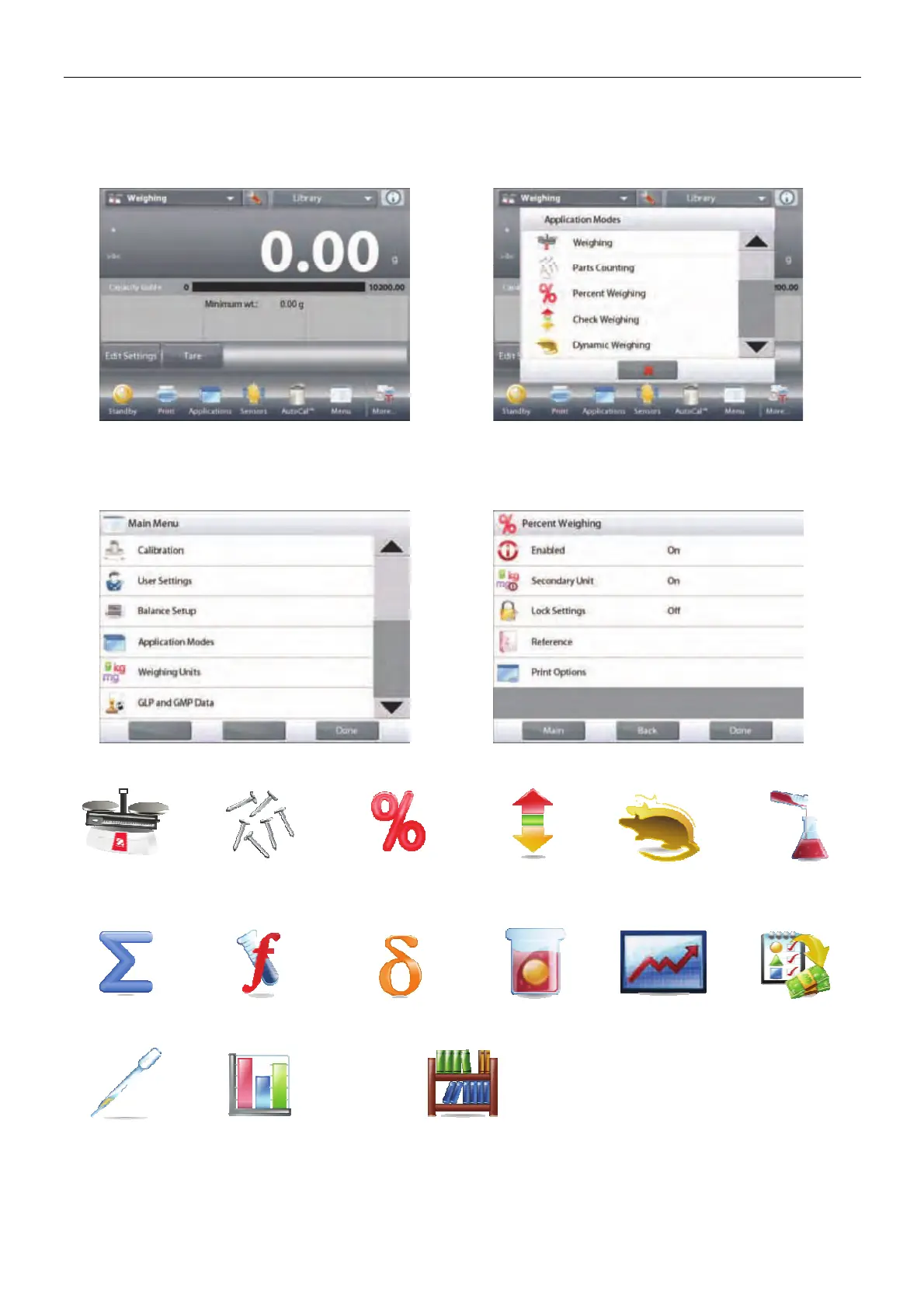 enable. Then touch Enabled in the setup menu for that application mode – Percent Weighing in the example