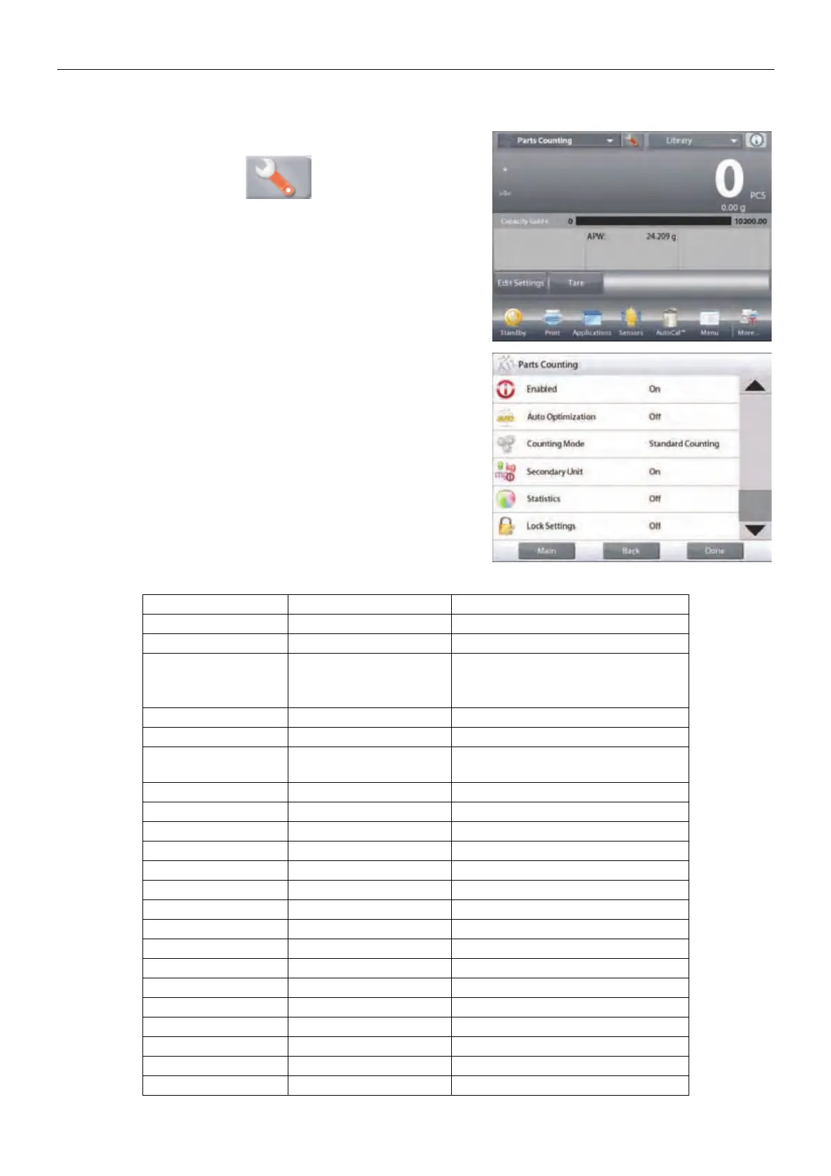The Counting Application Setups are below (defaults in Bold).