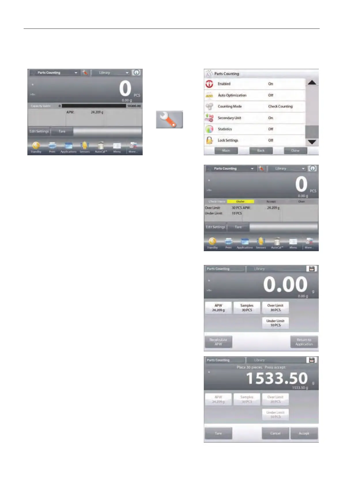 4.2.2.1 Edit Settings: To use the Parts Counting-Check mode,