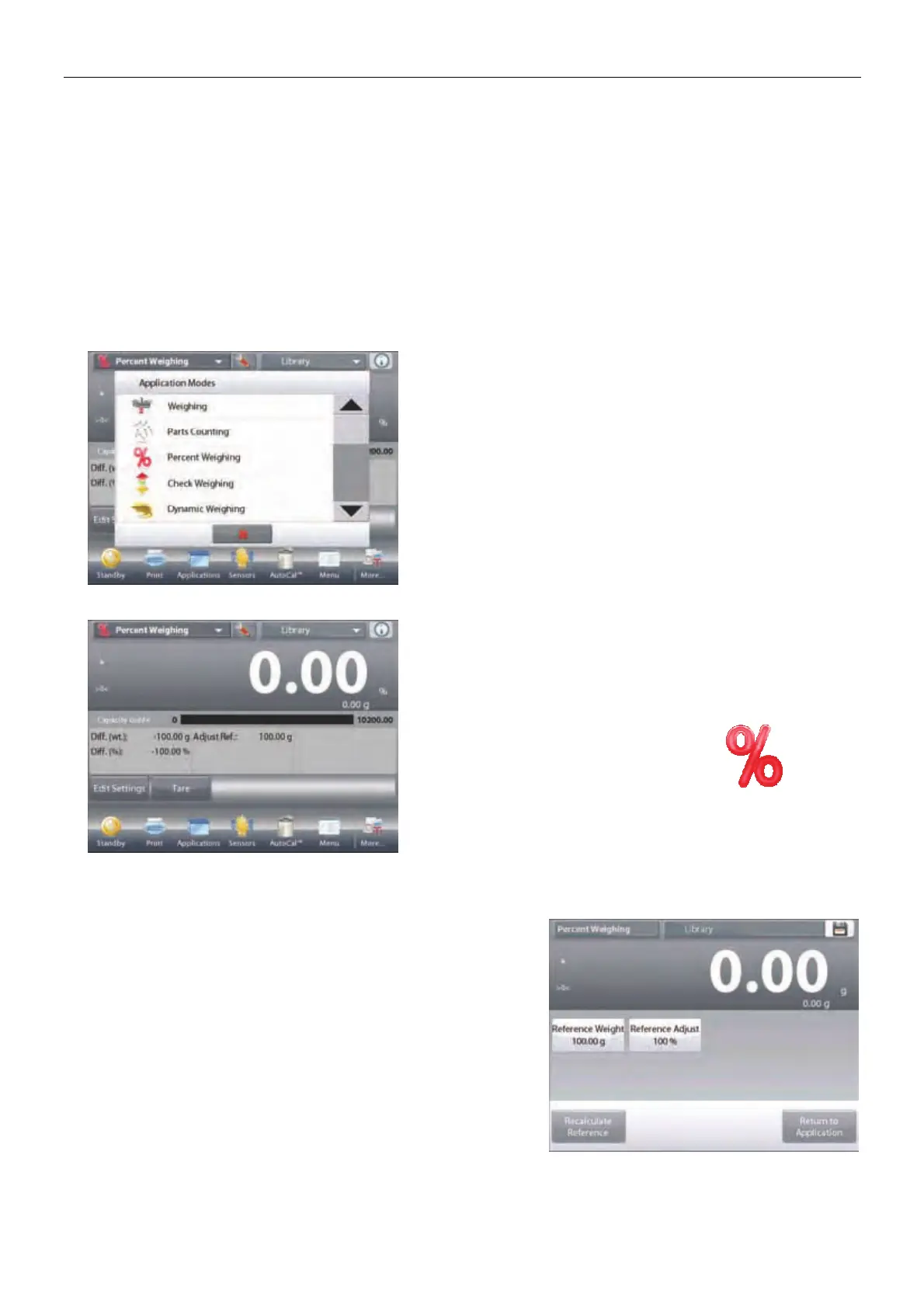 Use Percent Weighing to measure the weight of a sample displayed as a percentage of a pre-established
