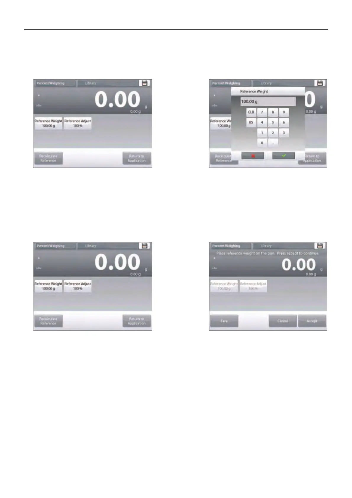 To return to the Percent weighing home screen, touch Return to Application.