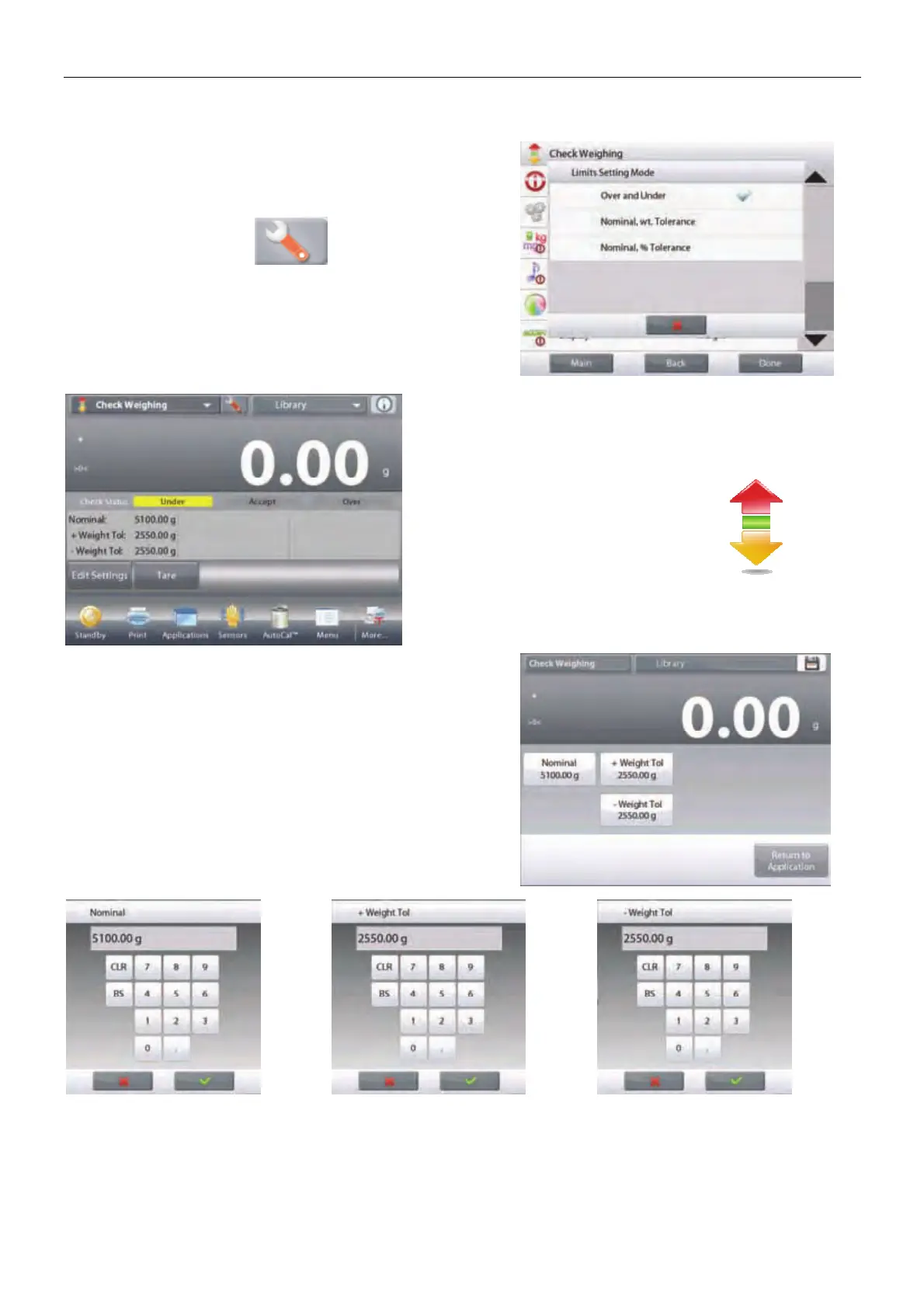 CHECK WEIGHING – Nominal/Wt Tolerance home screen