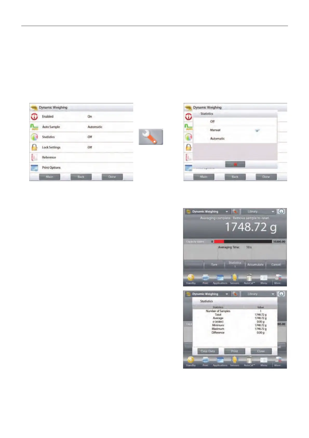 (Automatic Mode: weights are automatically recorded when stable). To use the statistics function, enable it first