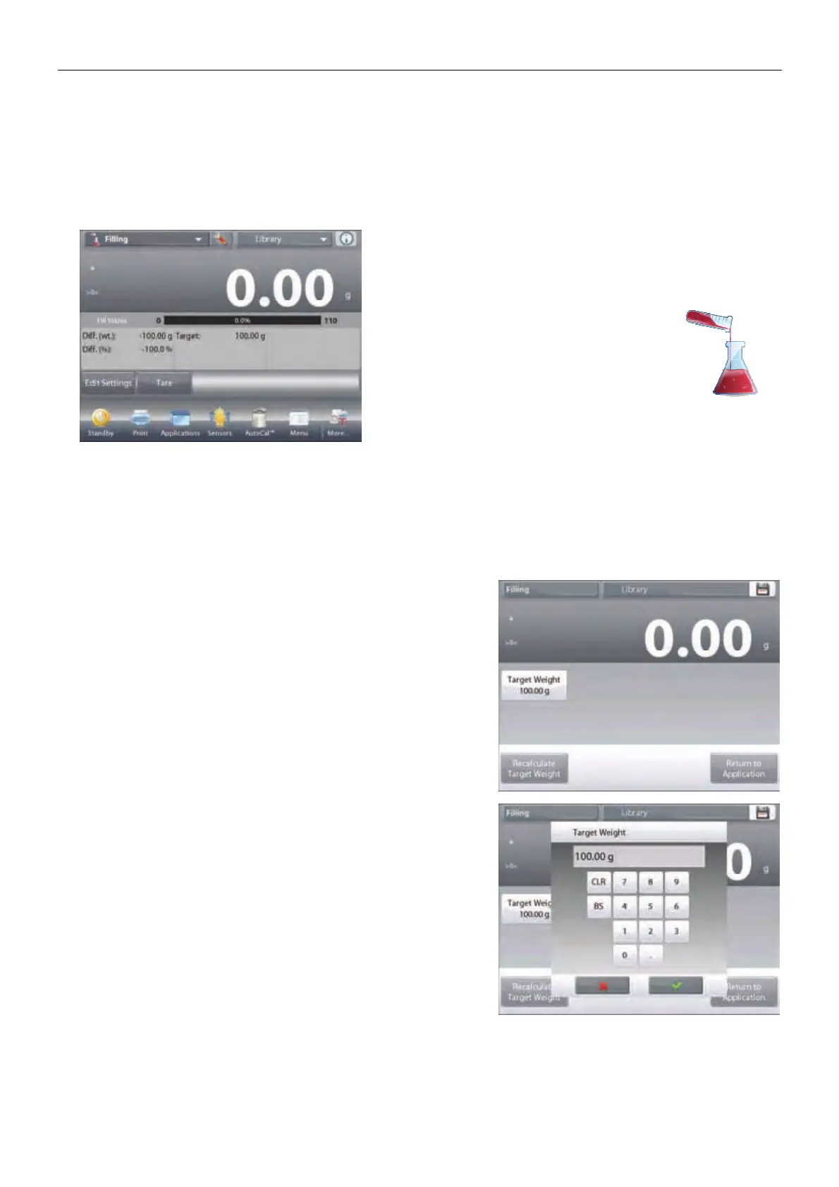 This application allows the user to slowly fill a container to a pre-determined target weight. The progress bar