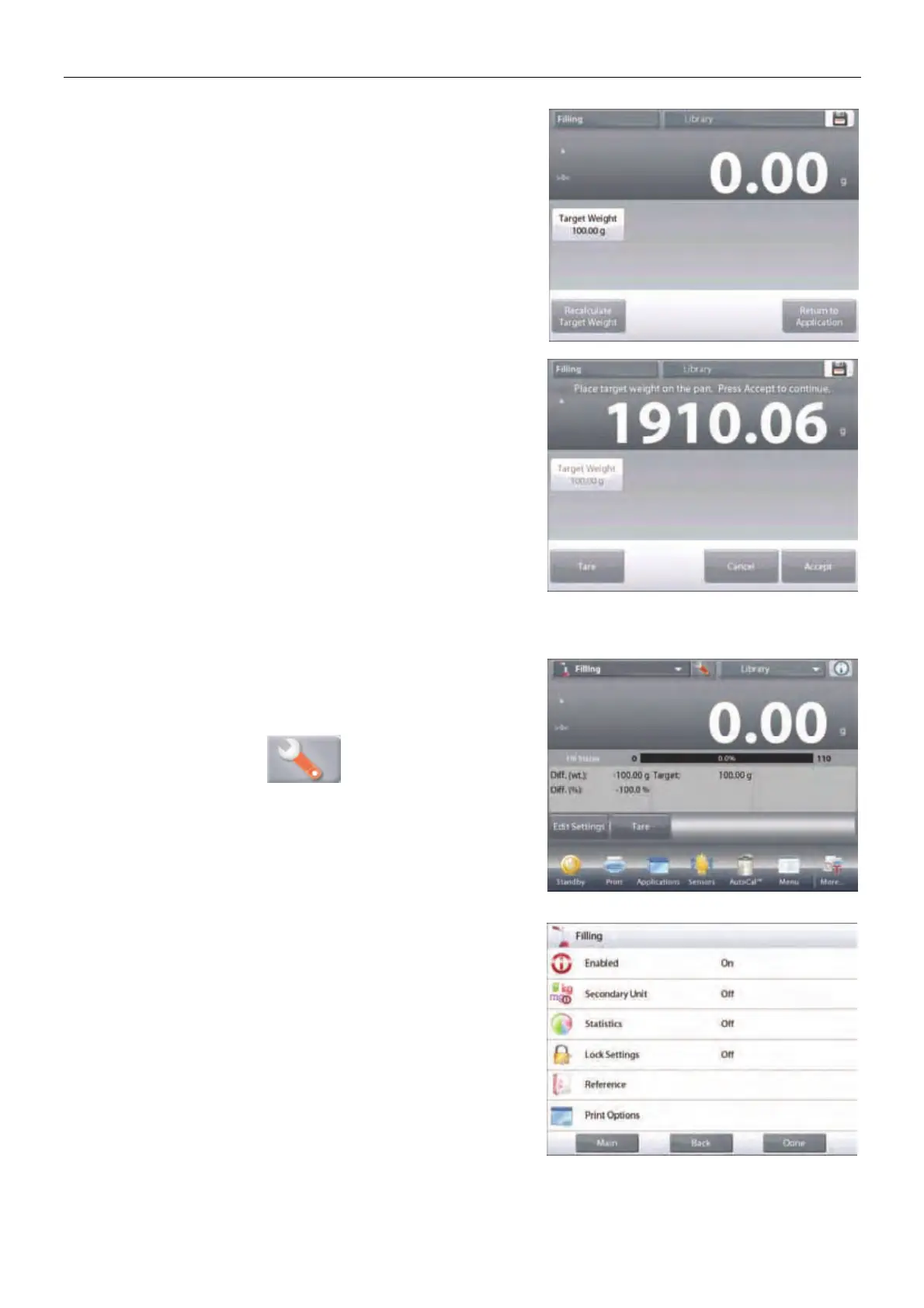 Place the target weight on the pan. Press Accept to