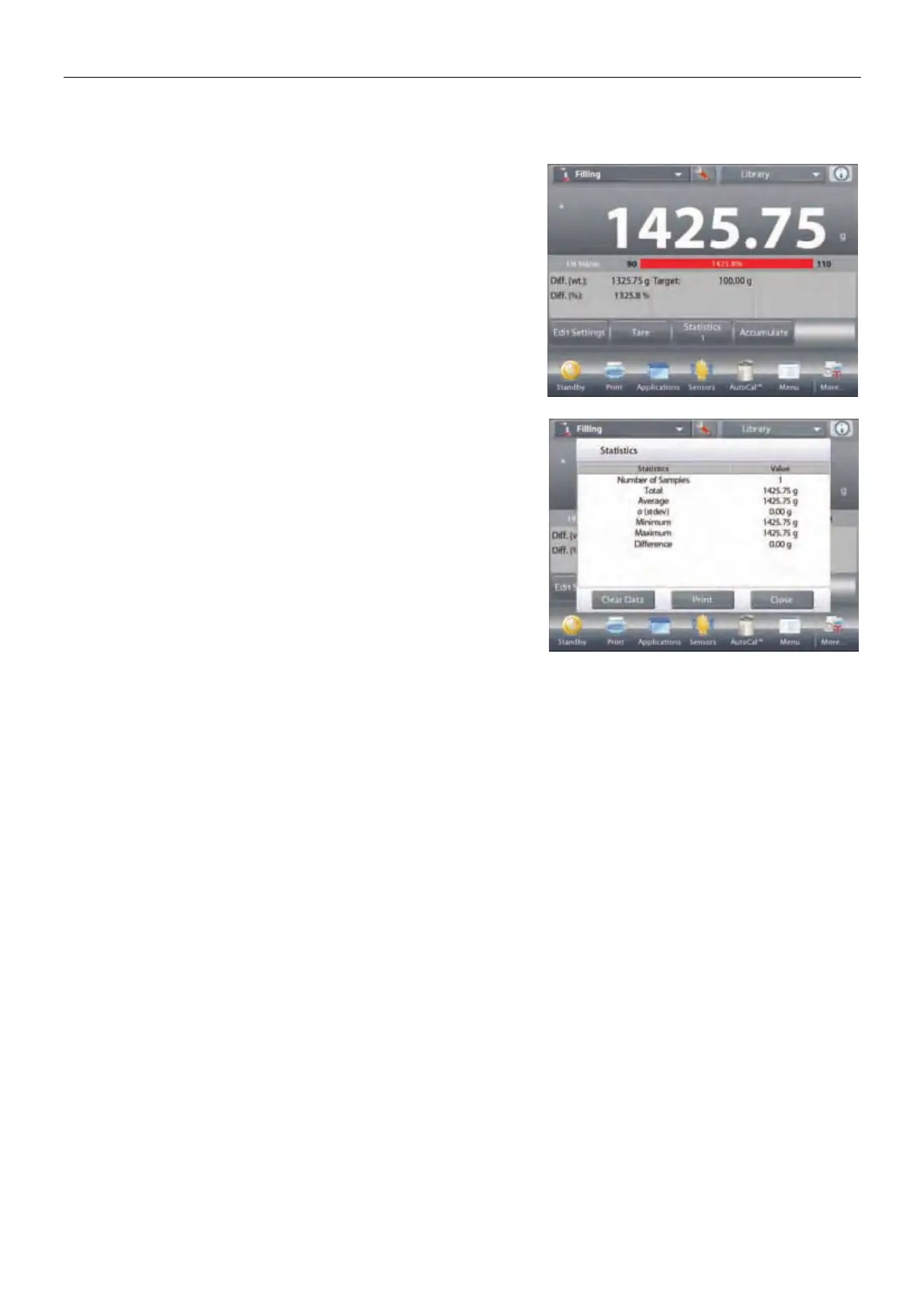 Statistics Automatic mode is similar to manual mode (above) except the first stable weight is automatically