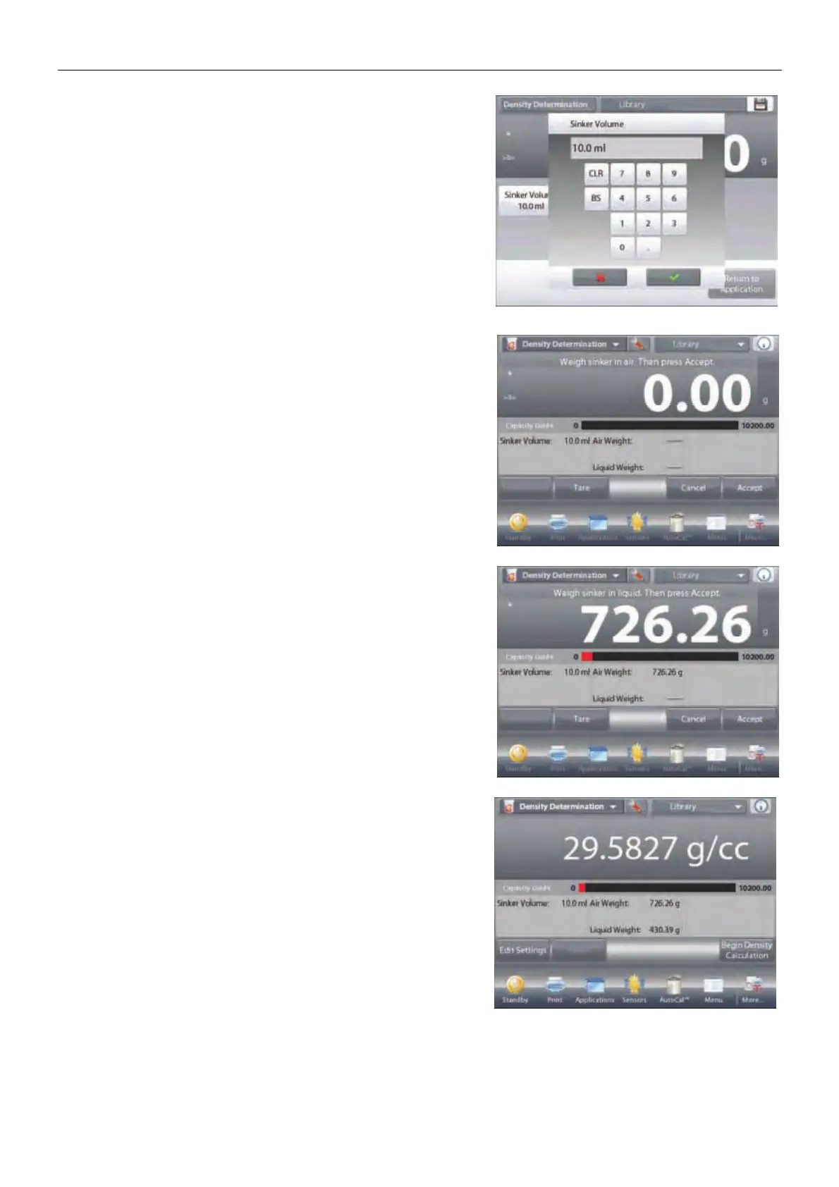 To return to the Density Determination home screen,