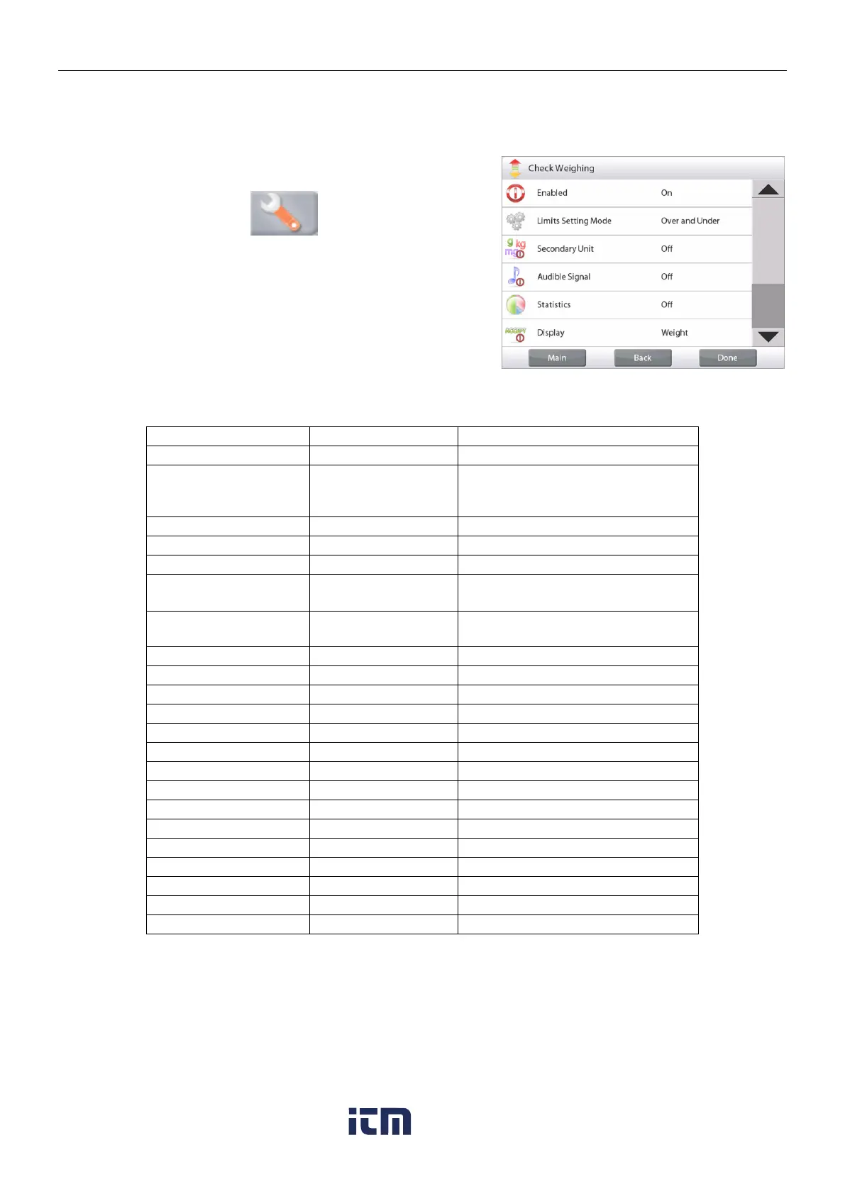 Check Weighing Application Setups (defaults in Bold)