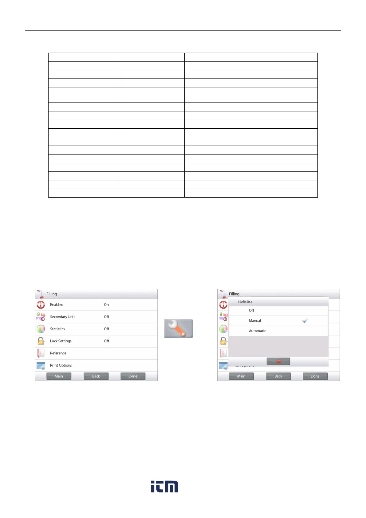(Automatic Mode: weights are automatically recorded when stable). To use the statistics function, enable it first