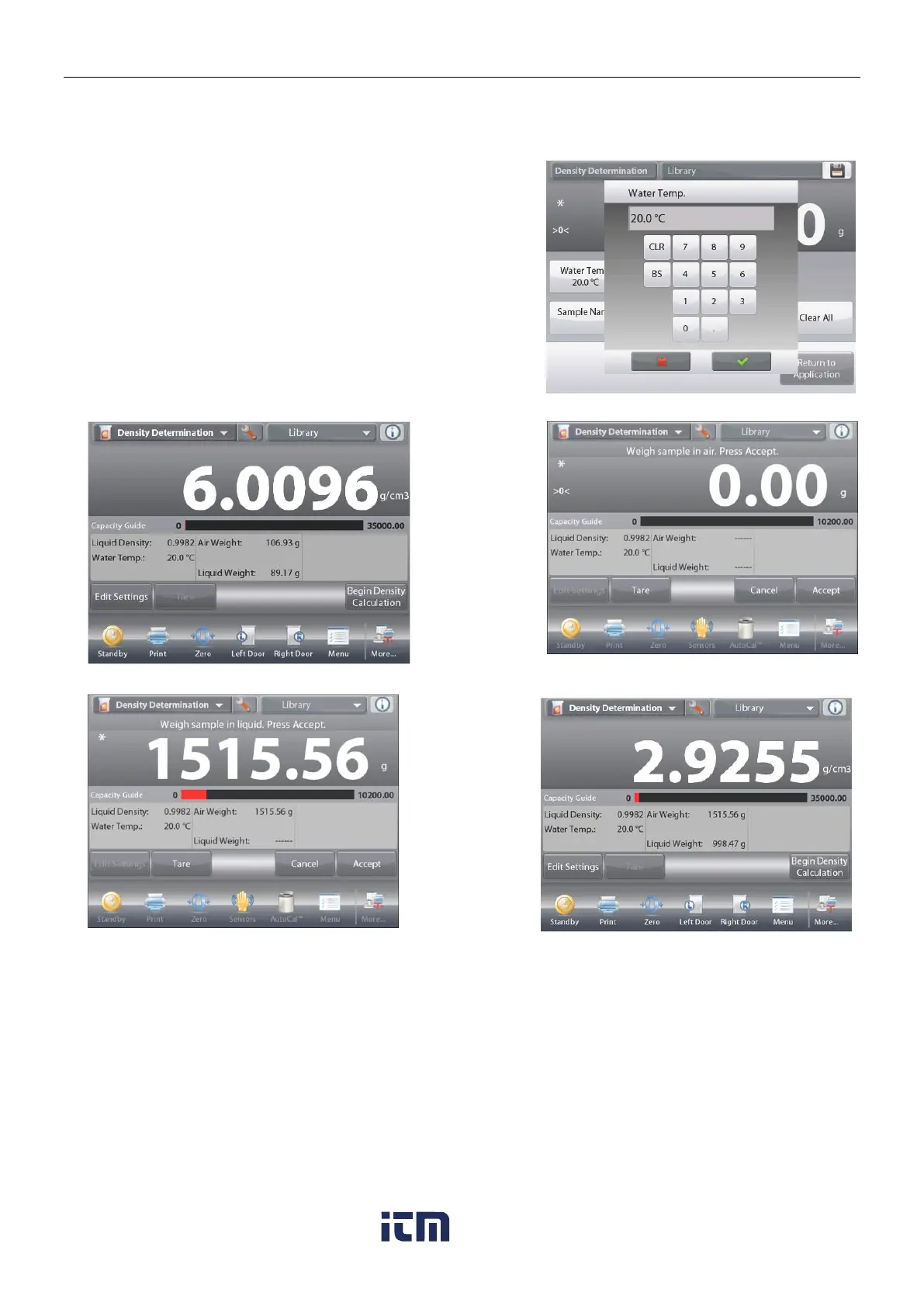 Once the necessary weights have been determined, the density of the sample is displayed in g/cm