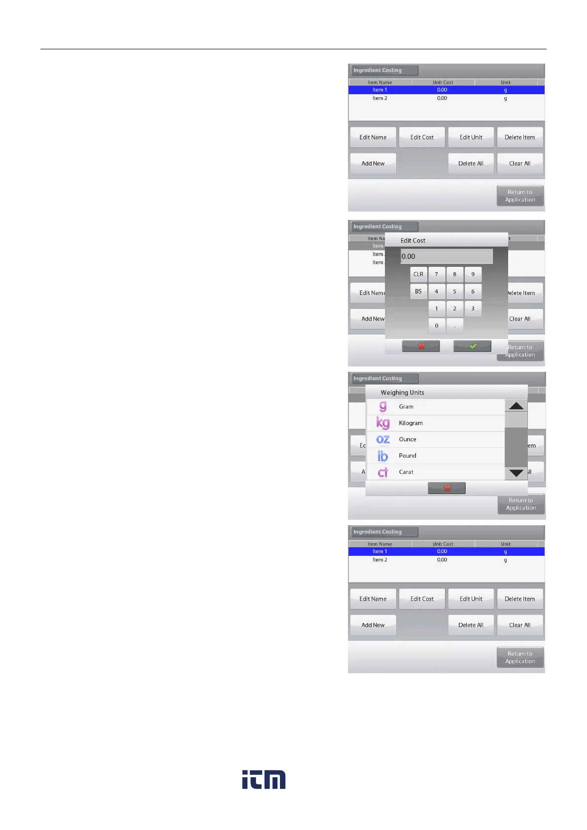 The Weighing Units screen appears.