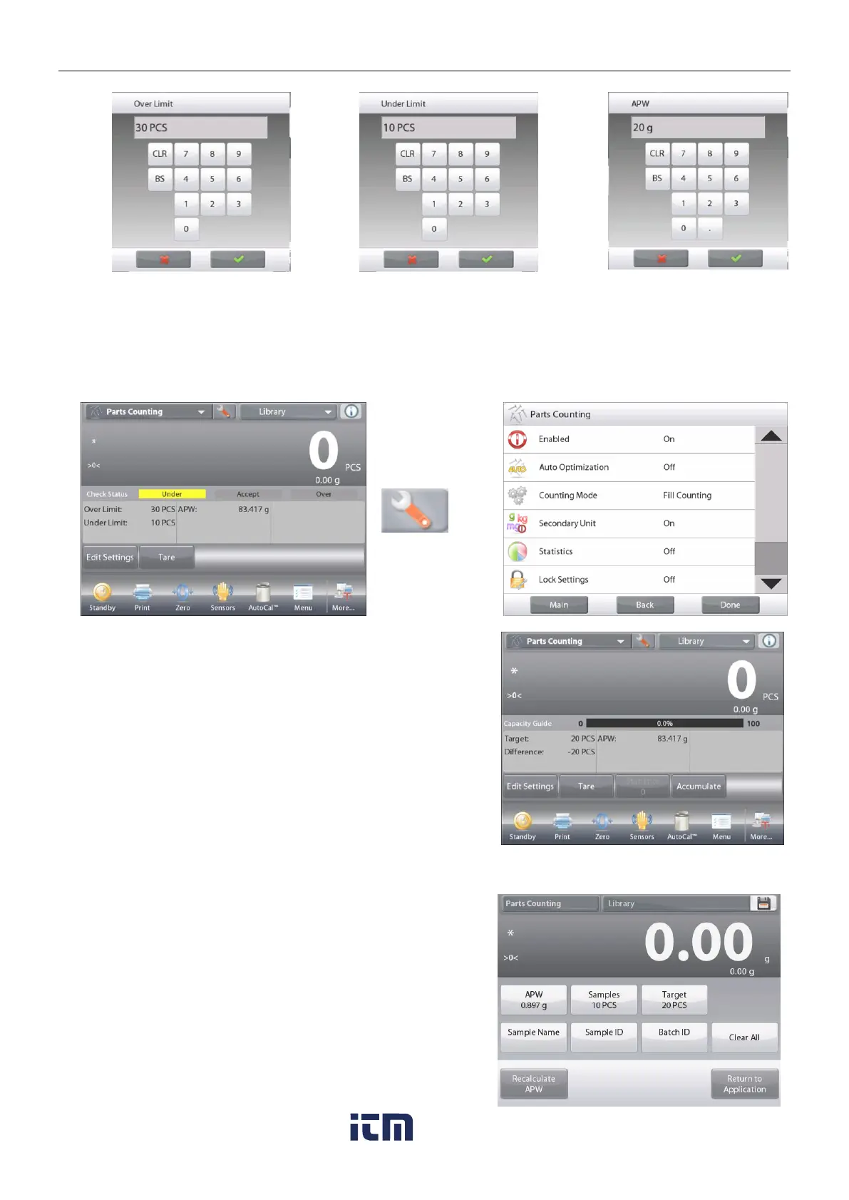 The PARTS COUNTING – Fill Home screen