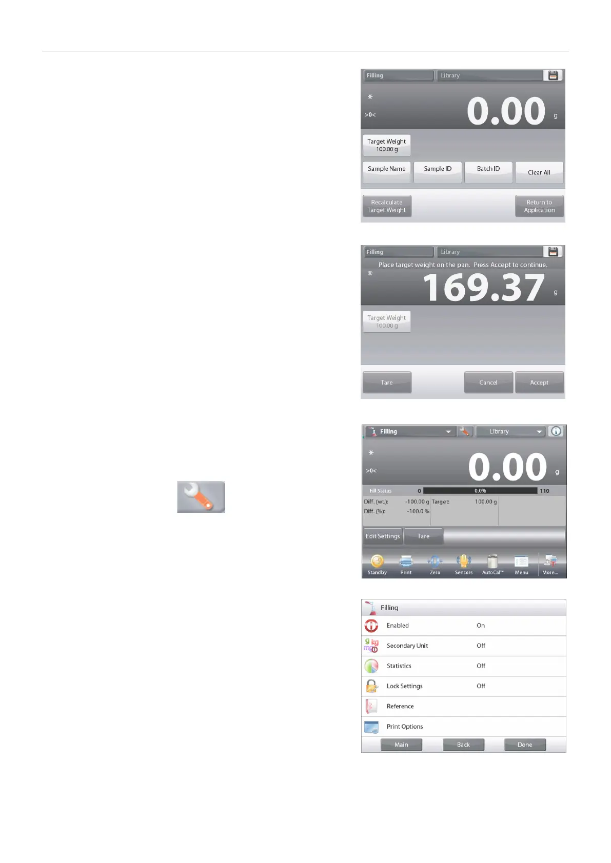 Place the target weight on the pan. Press Accept to