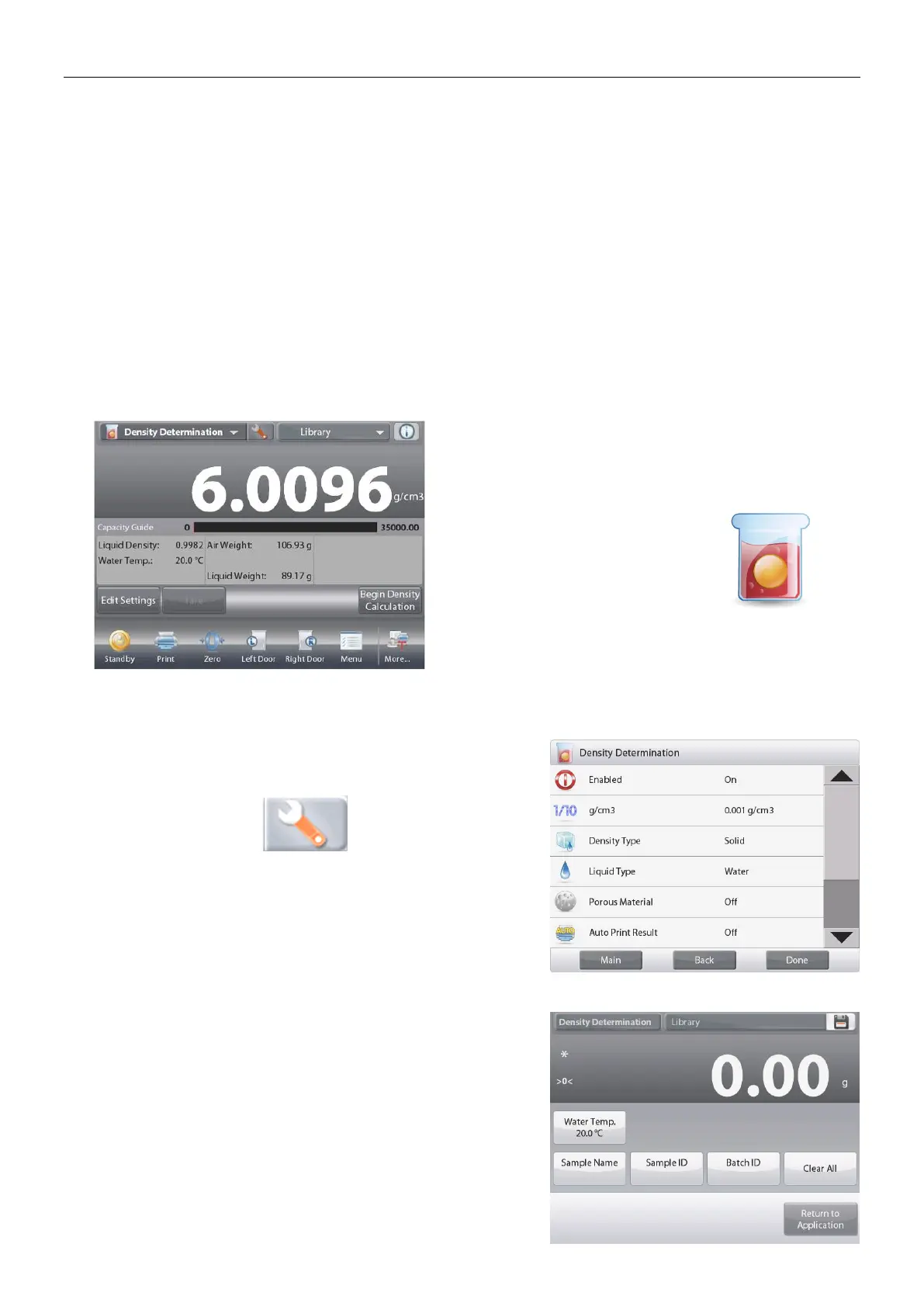 automatically recorded). Before making density measurements, establish the Application Settings.