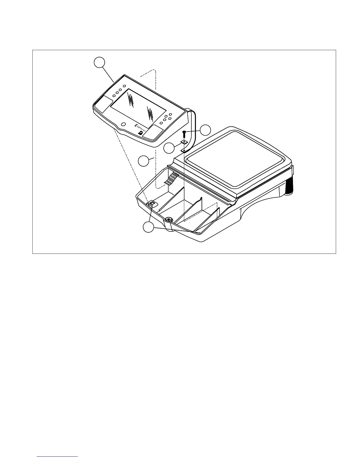 5.Carefully lift the display (2) up from the balance and swing towards the rear. You will notice a grounding strap
