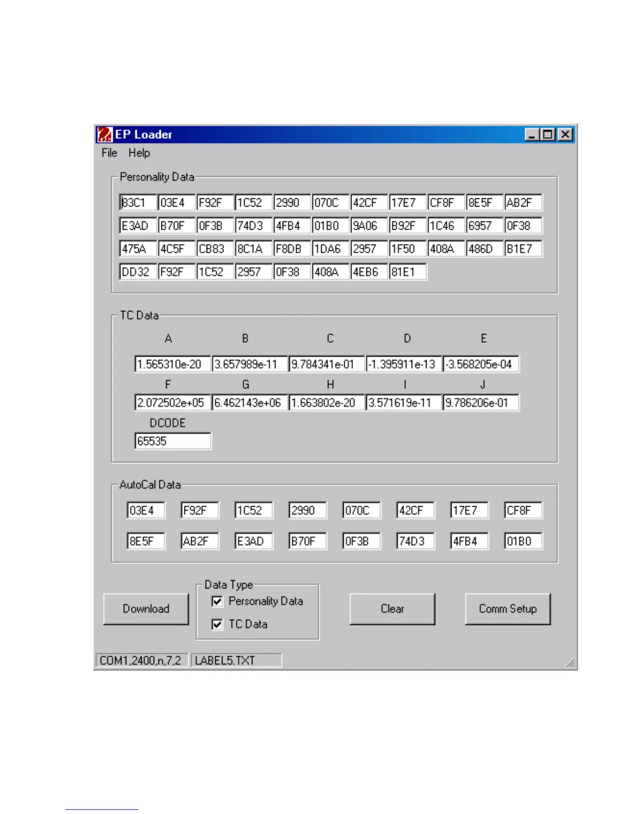 3. Confirm that the TC Data from the label was correctly inputted into the TC Data of the EP