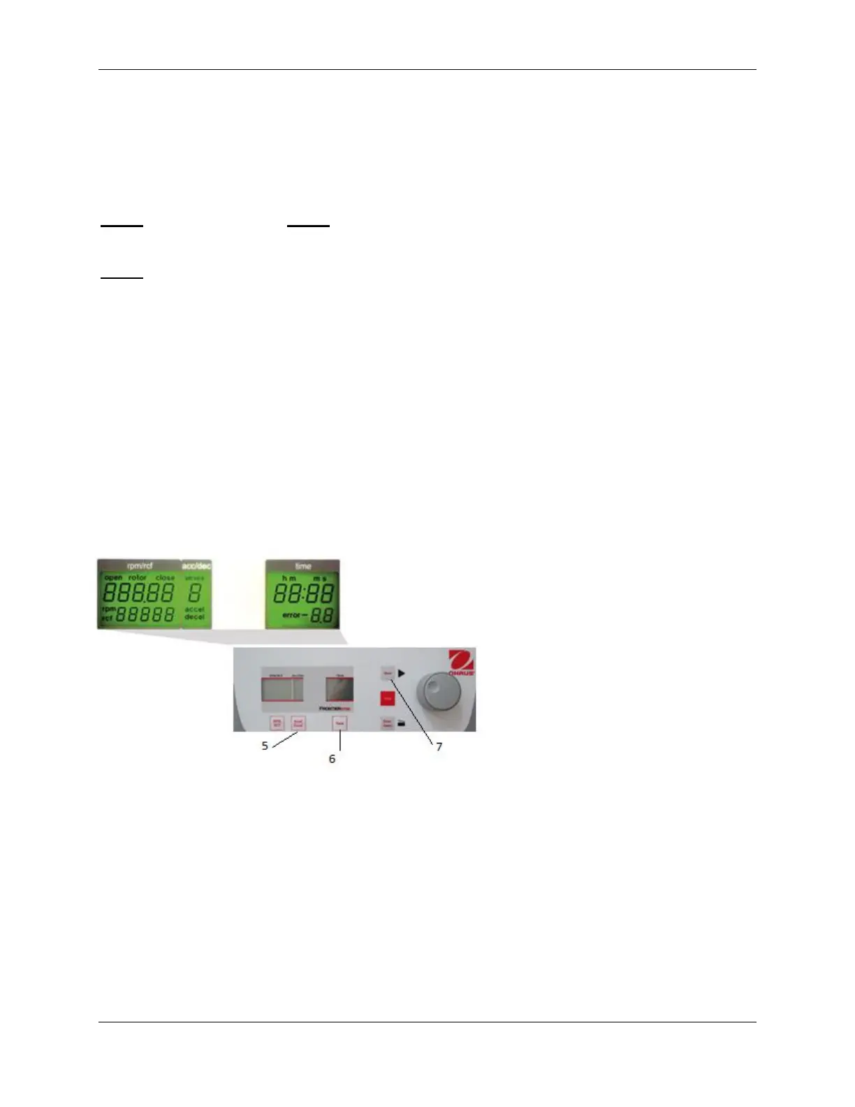 If the centrifuge is still turned off, press simultaneously the keys „time“ (6) and „lid“ (7) and turn