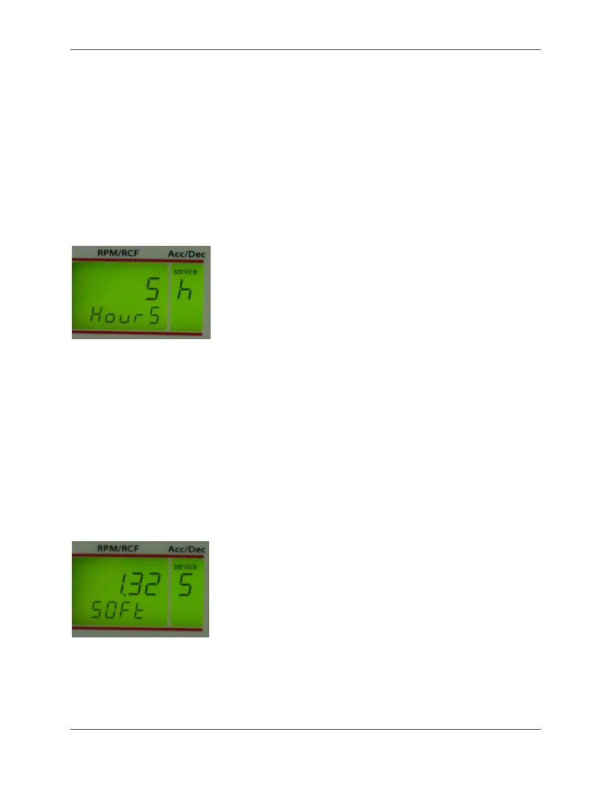 In the display “rpm/rcf“ (A-1) the running time of the motor is indicated now.