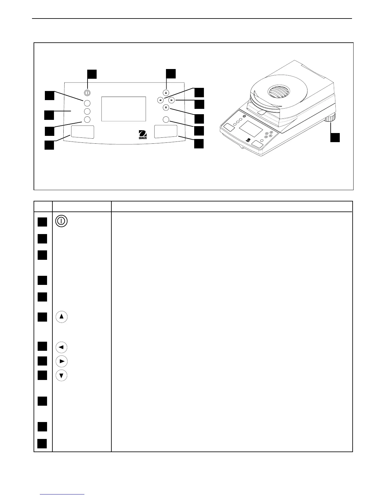 12 Leveling feet Used to level the Moisture Analyzer.