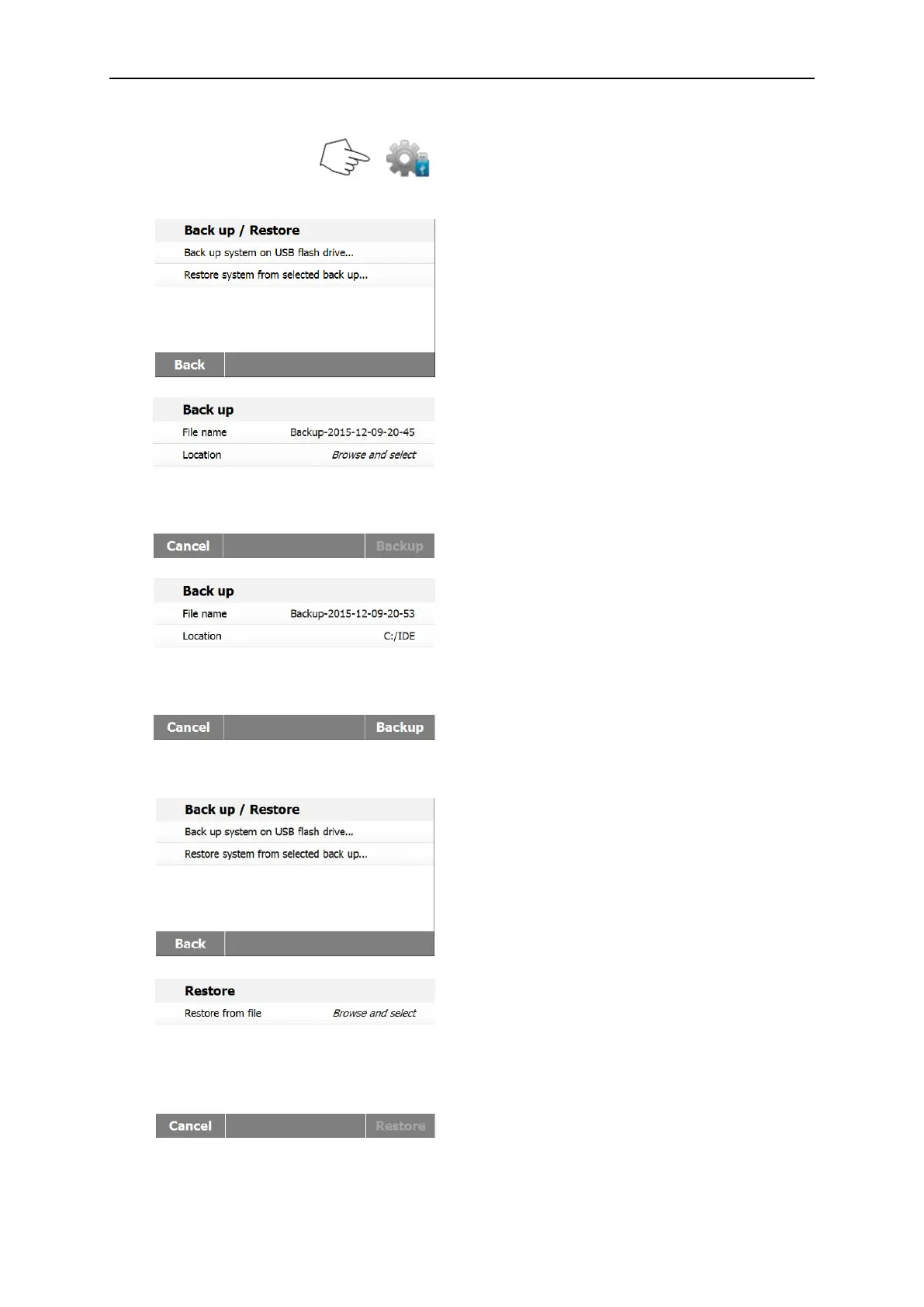 Press Backup and restore to backup or