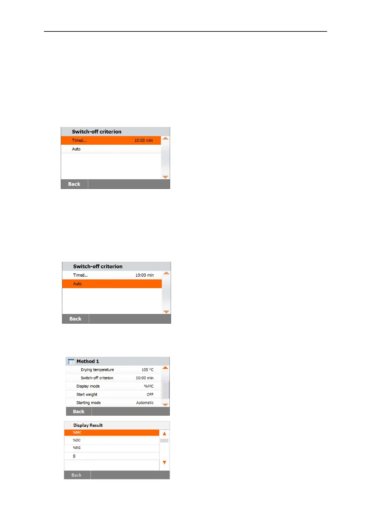 This menu offers you different switch-off criterion. Switch-off criterion defines when the