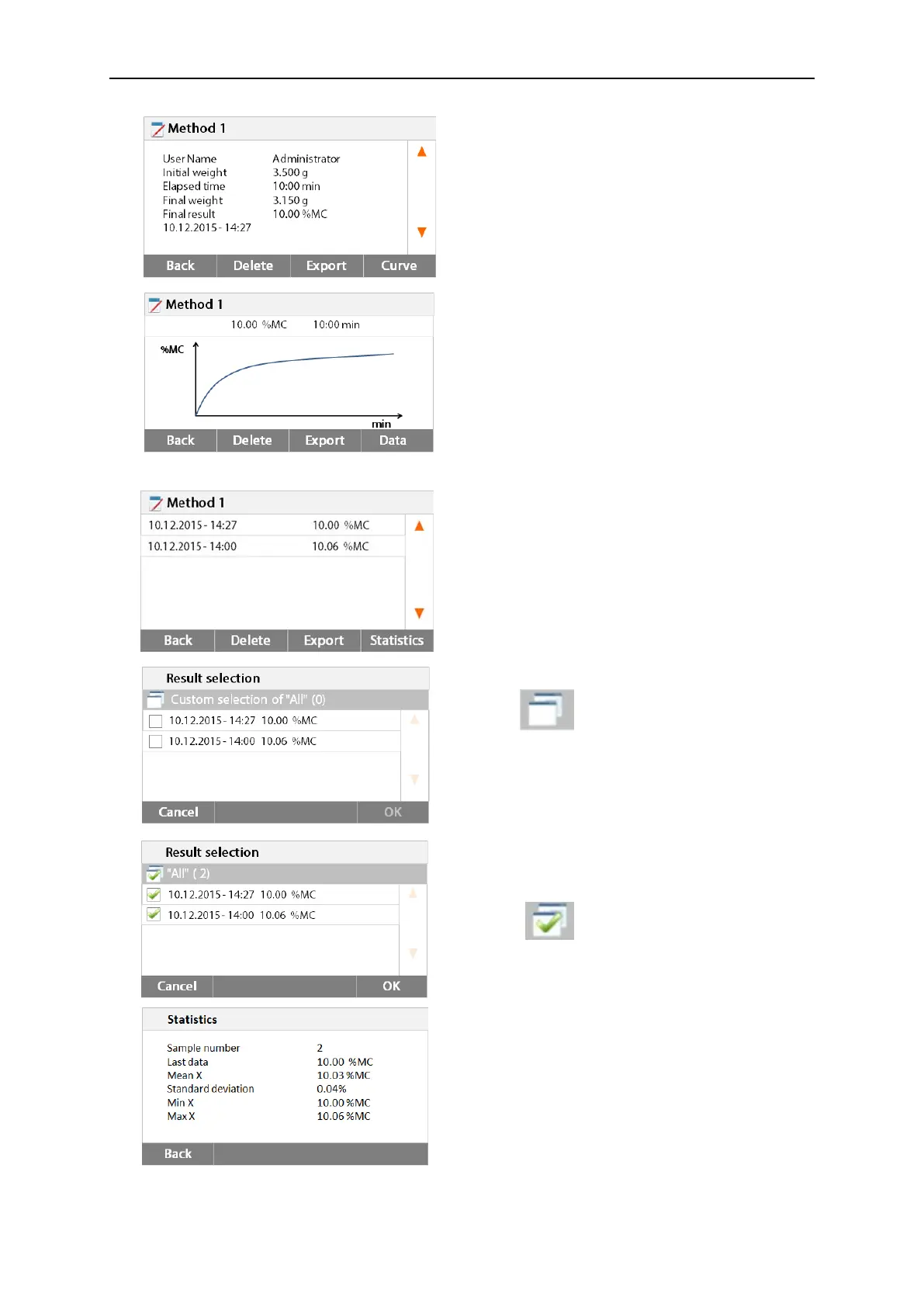 Press Data to show detailed result data.