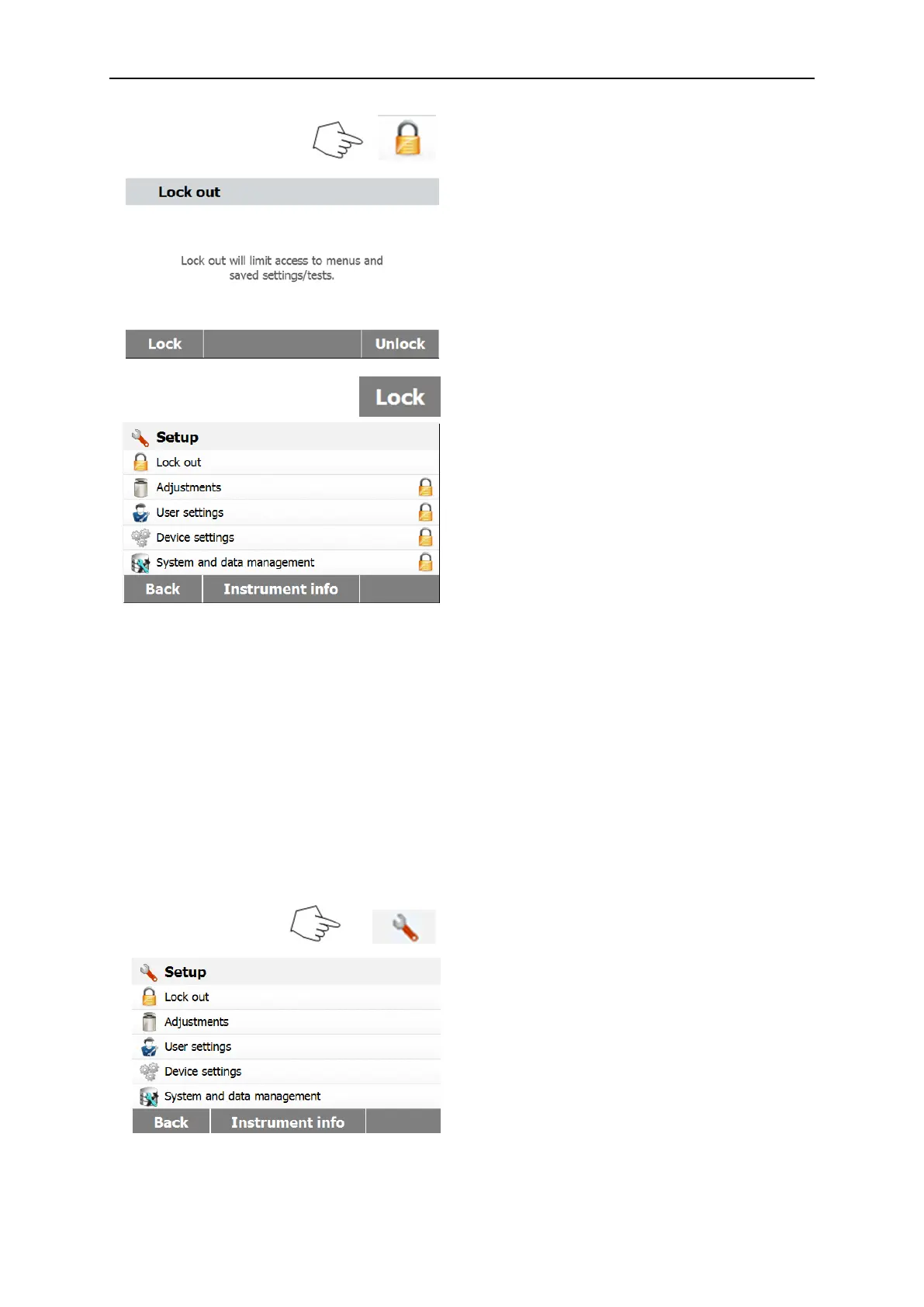 Press Lock out to access the lock out menu.