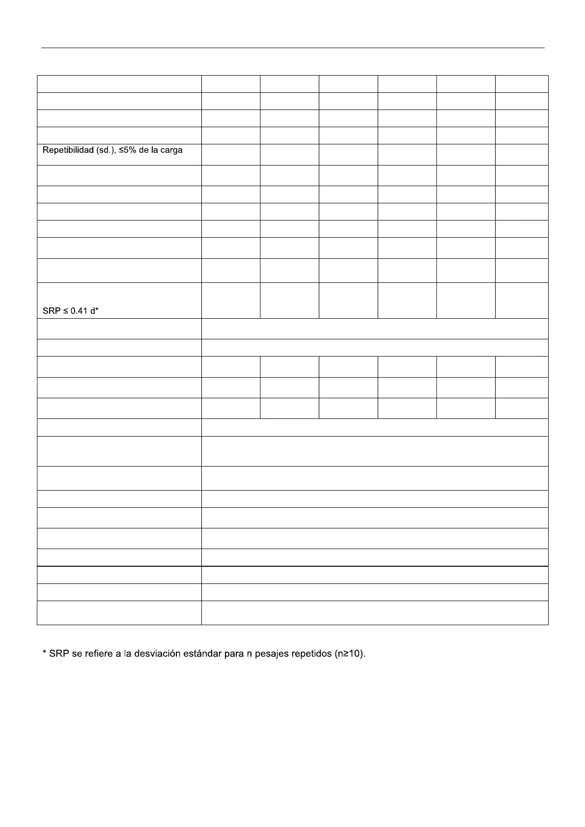 Repetibilidad (sd.), 5% de carga