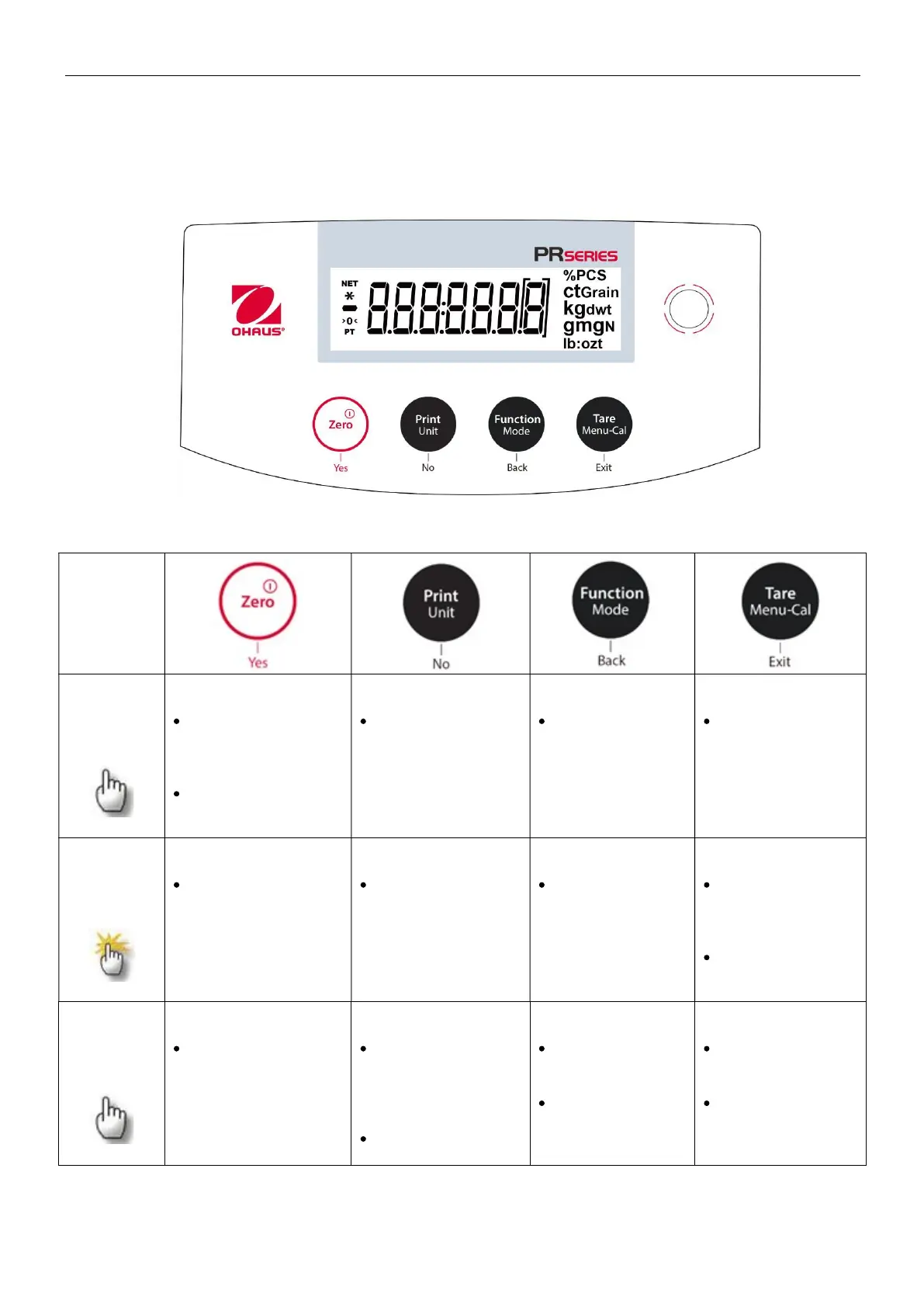 OHAUS PR523/E - Descripción de la Pantalla, Pantalla de Inicio; Funcionamiento