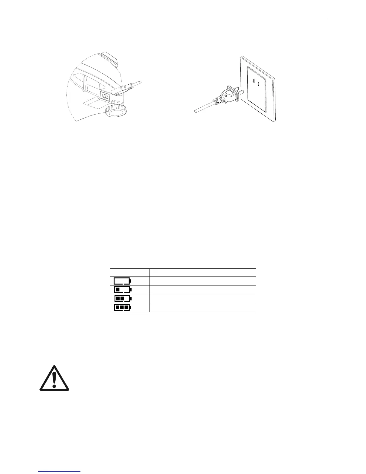 During battery operation, the battery symbol indicates the battery charge level. The scale